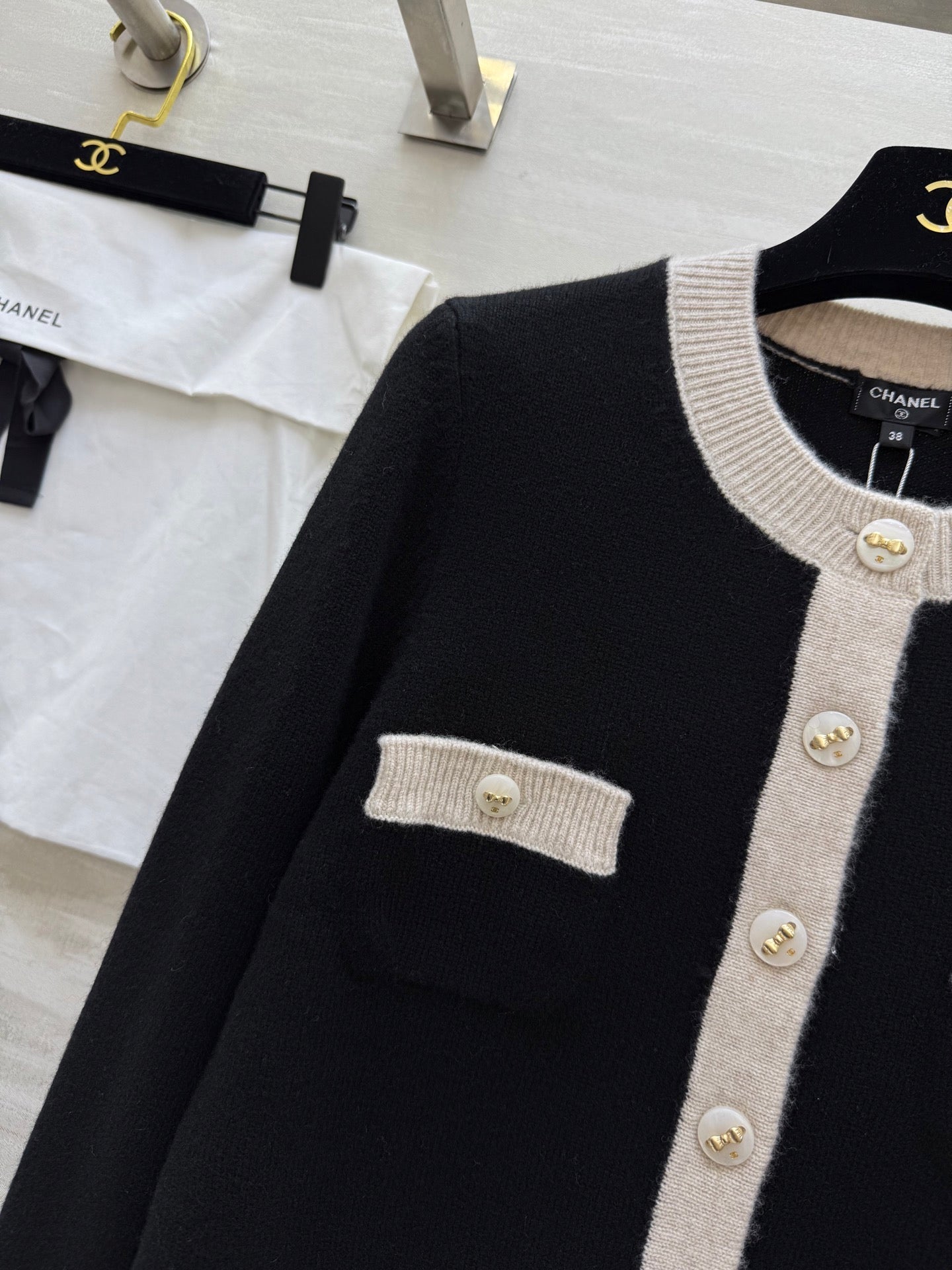 Chanel 2025 Two-Piece Cardigan Jacket Black Wool Cashmere 319528