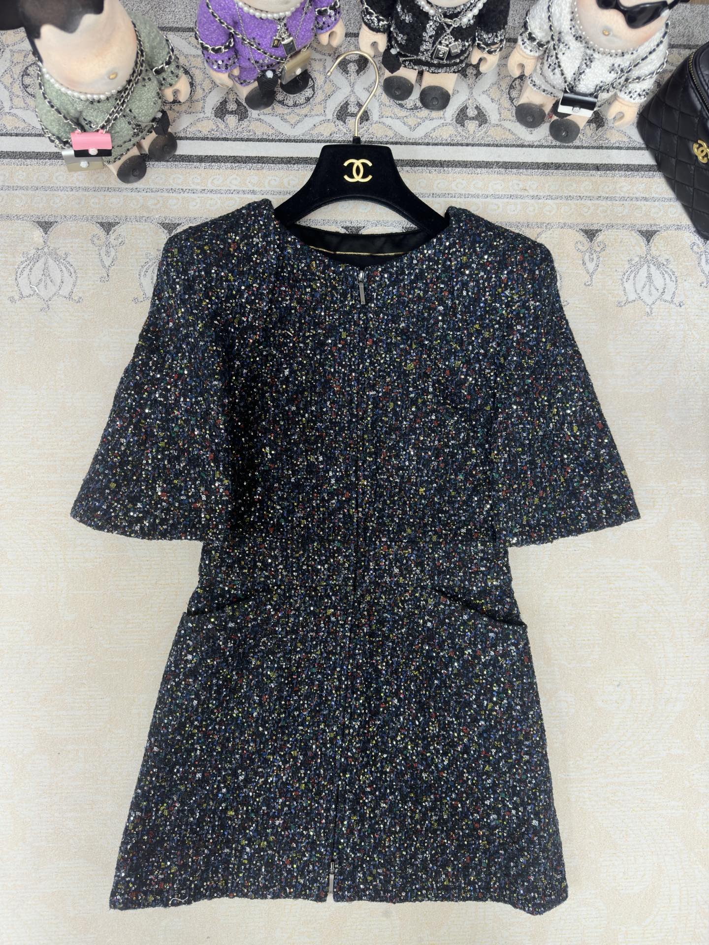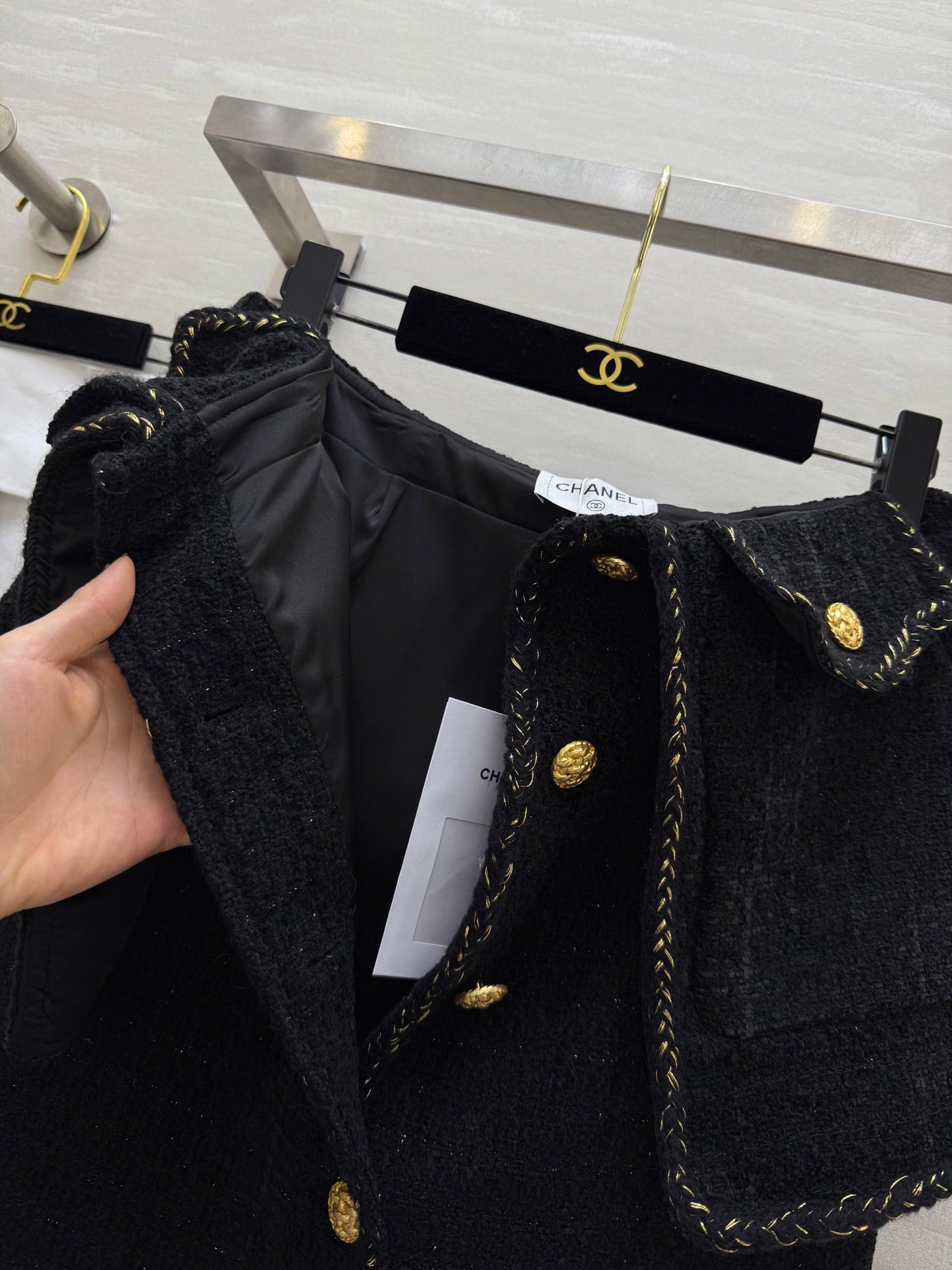 Chanel 2025 Jacket Black Tweed Fabric Gold Buckle 319479
