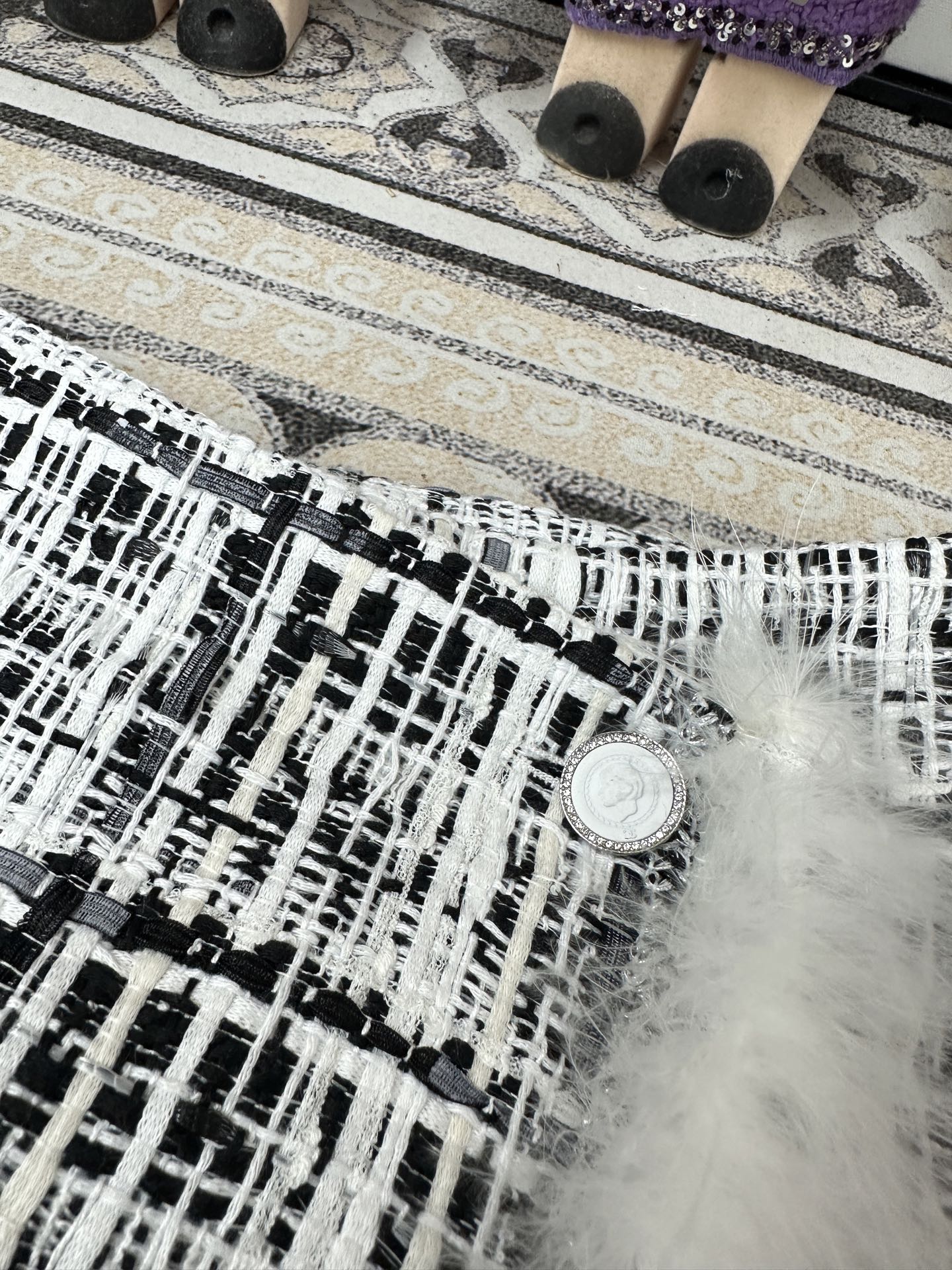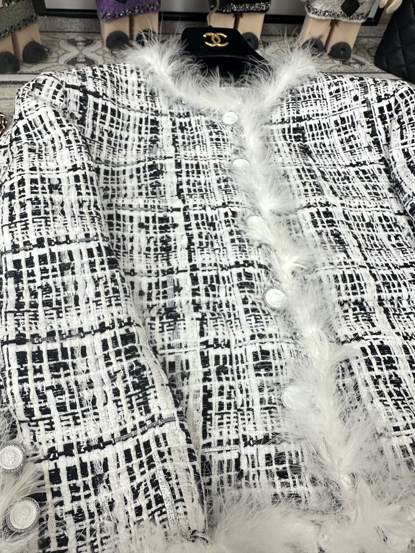 CC Tweed Fur Coat Black White Cotton Polyamide 251826