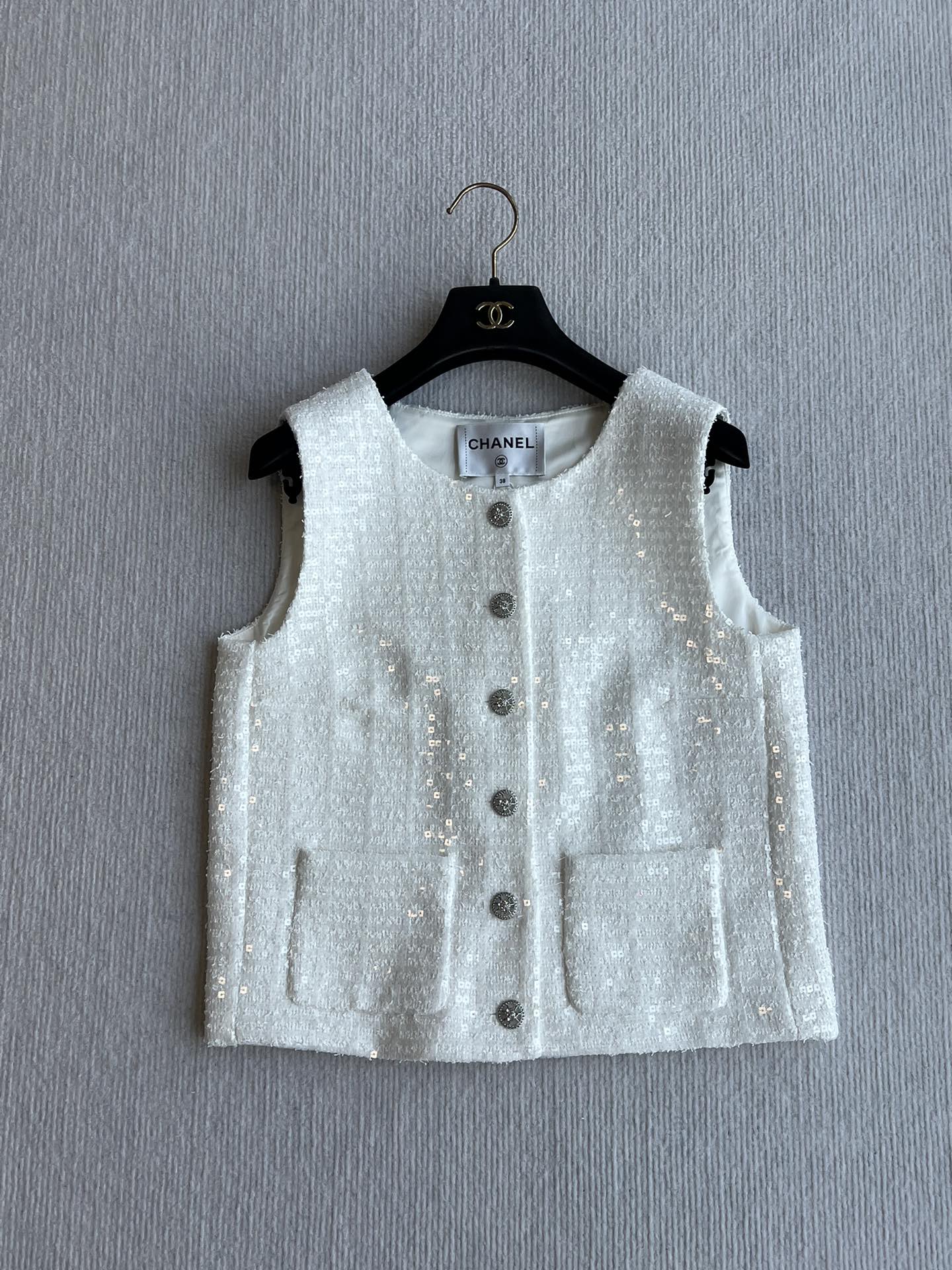 CC Tweed Twinkle Vest White Cotton Polyamide 251873