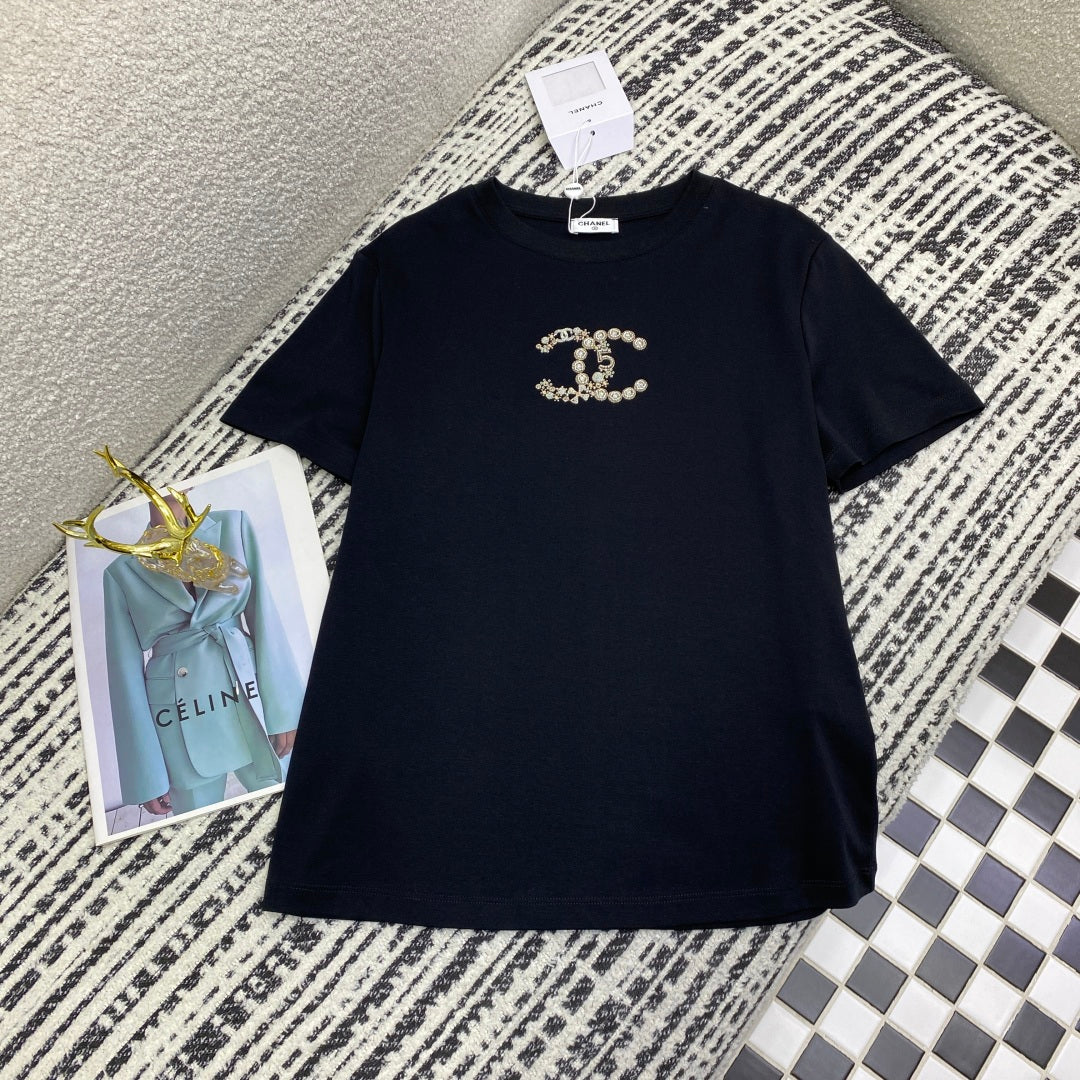 Chanel 25 T-shirt Black White Patchwork Knitted Crewneck