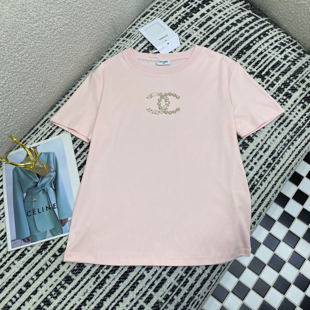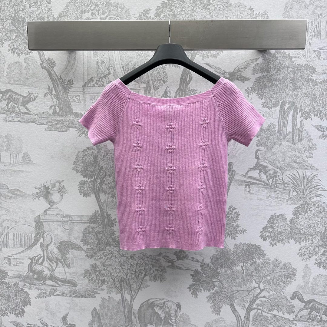 CC 25 Hollow Knitted T-shirt Pink cotton