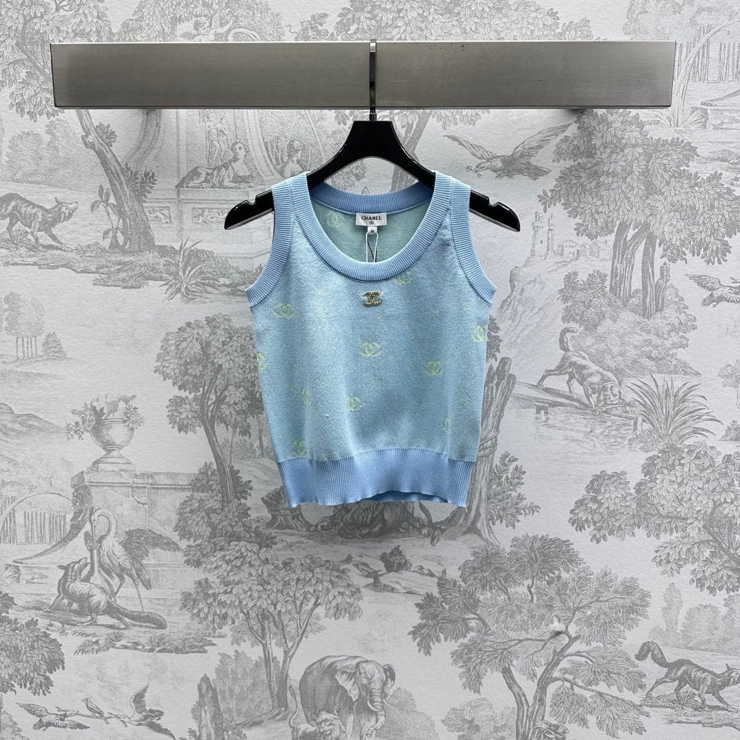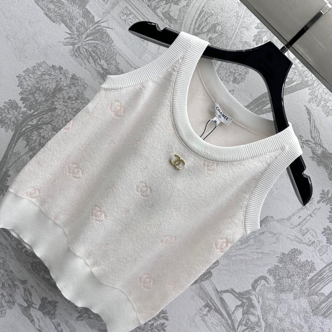 Chanel 25 Tank Top Black White Patchwork Knitted Crewneck