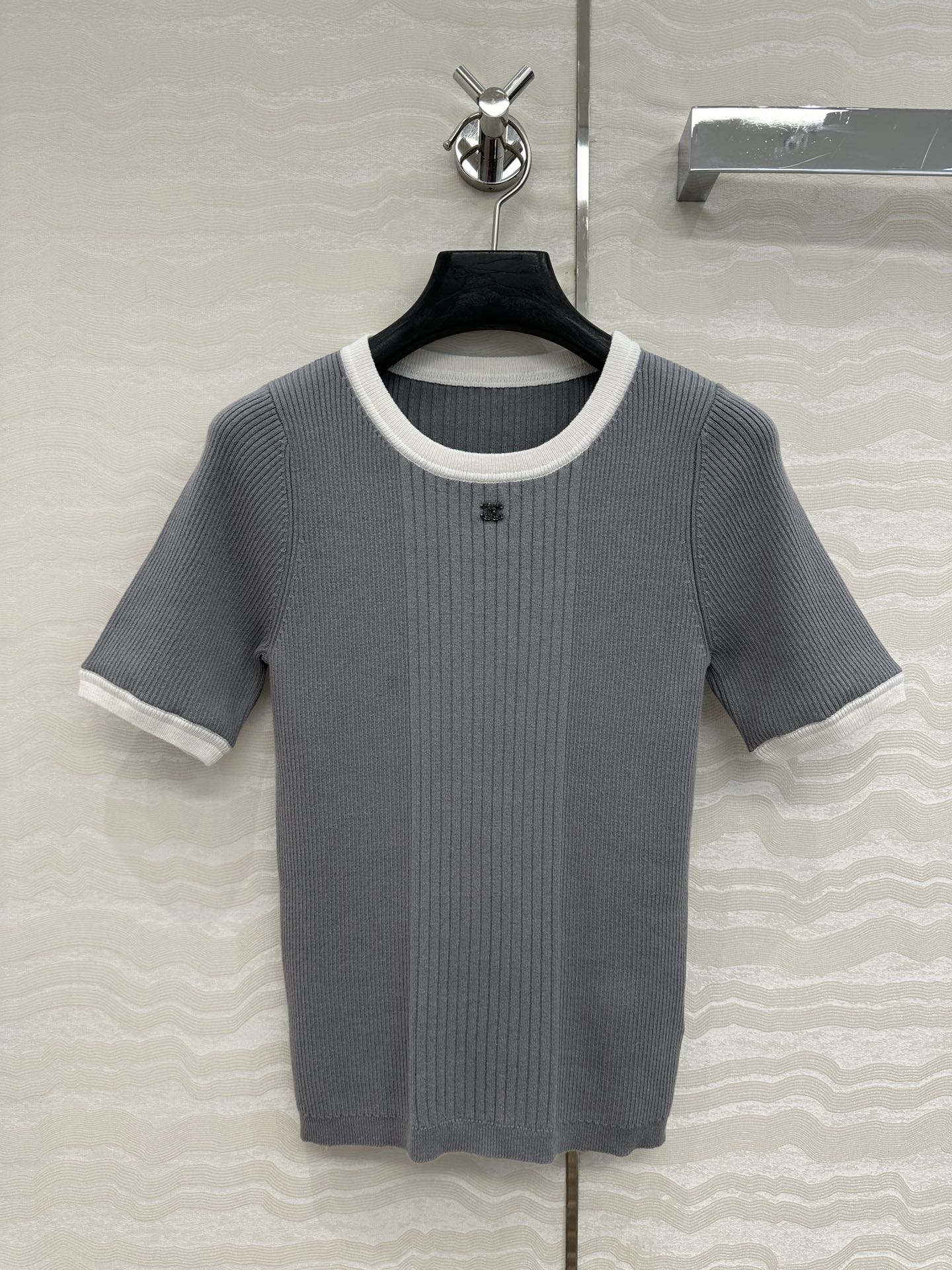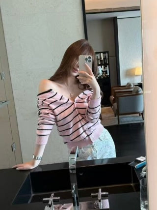 CC 25 Striped One-shoulder Short-sleeved T-shirt Cotton