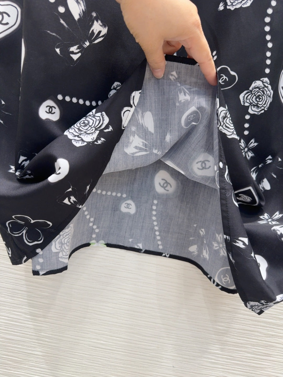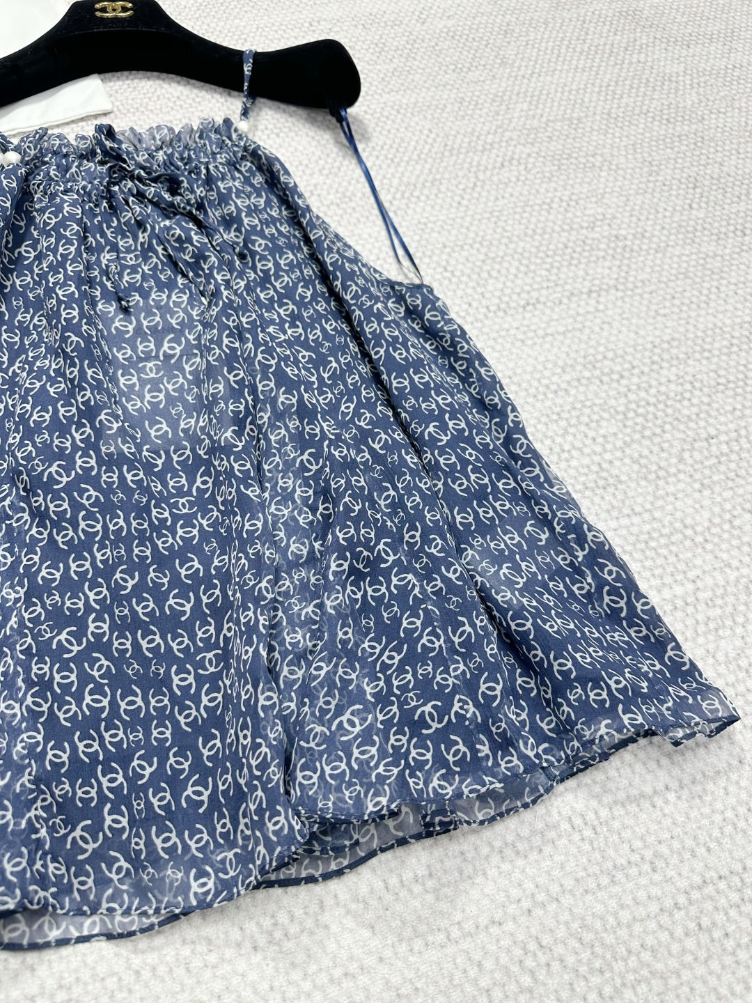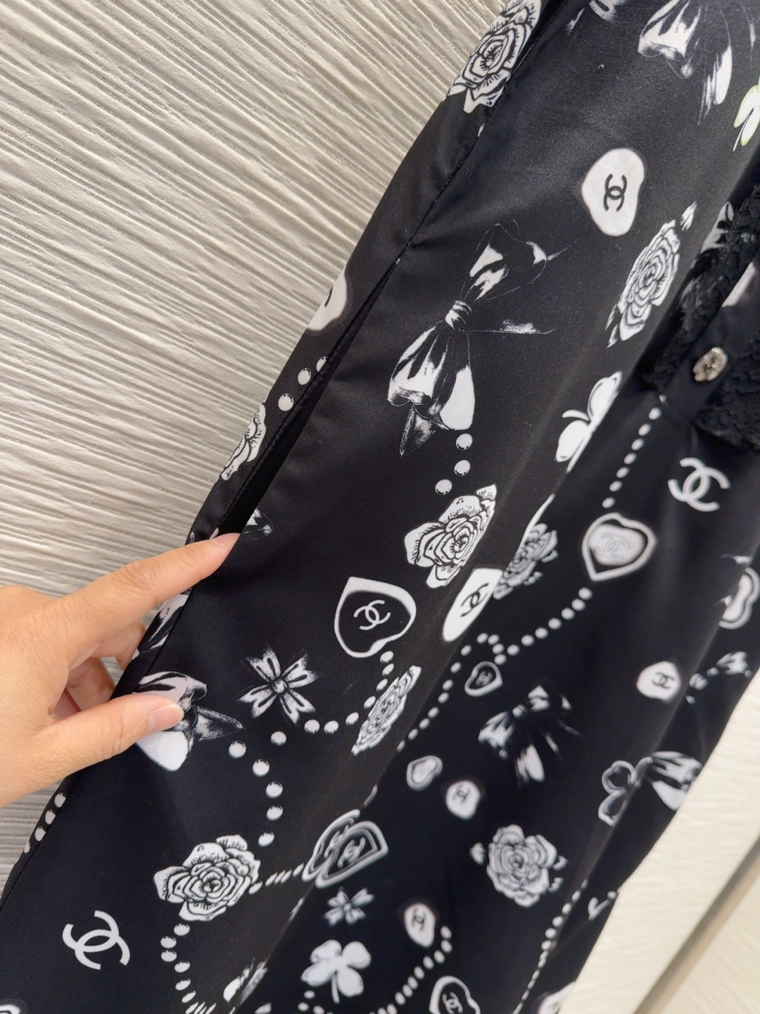 CC 2025 Double C Printed Skirt Black White Polyester Fiber