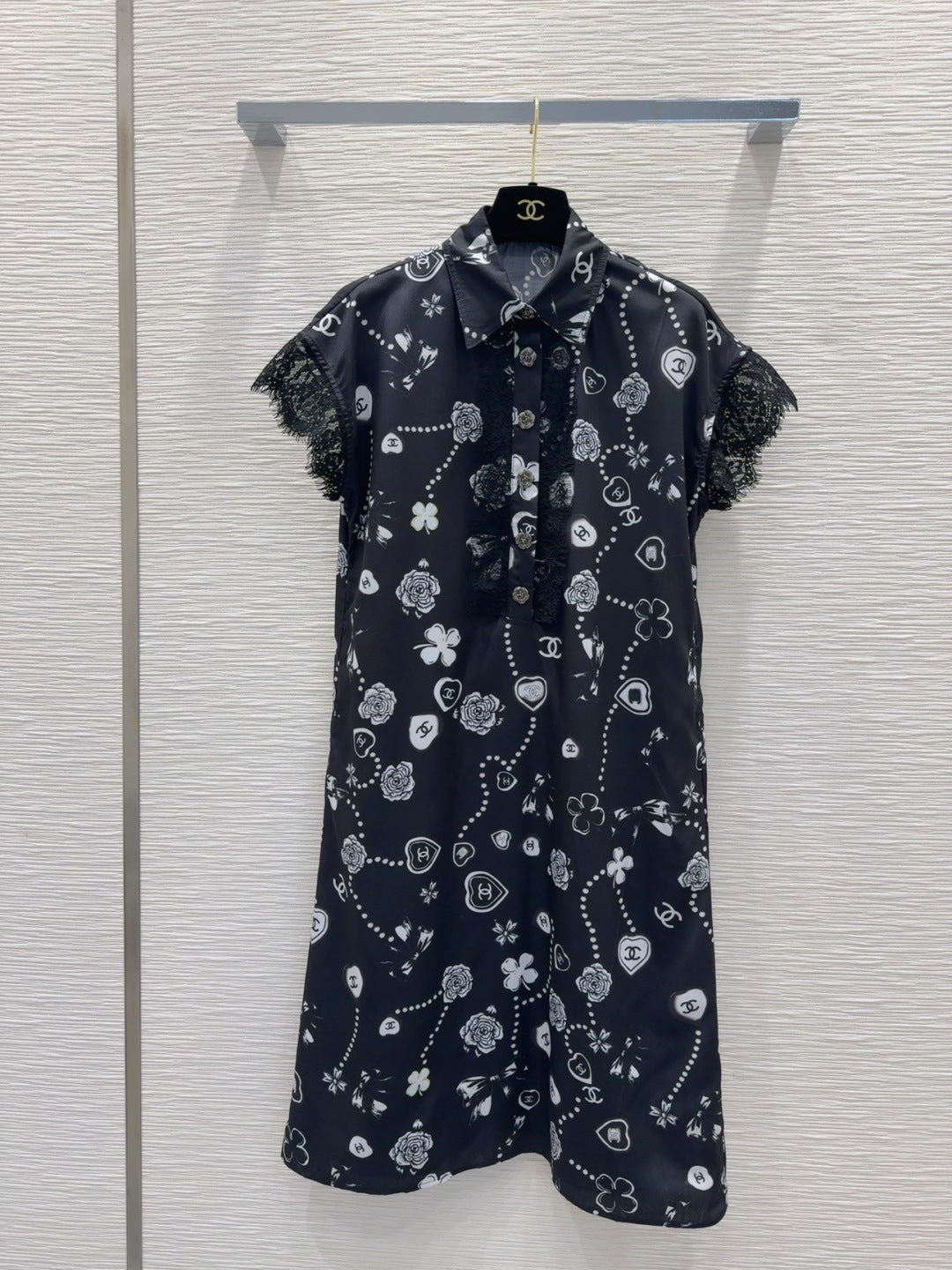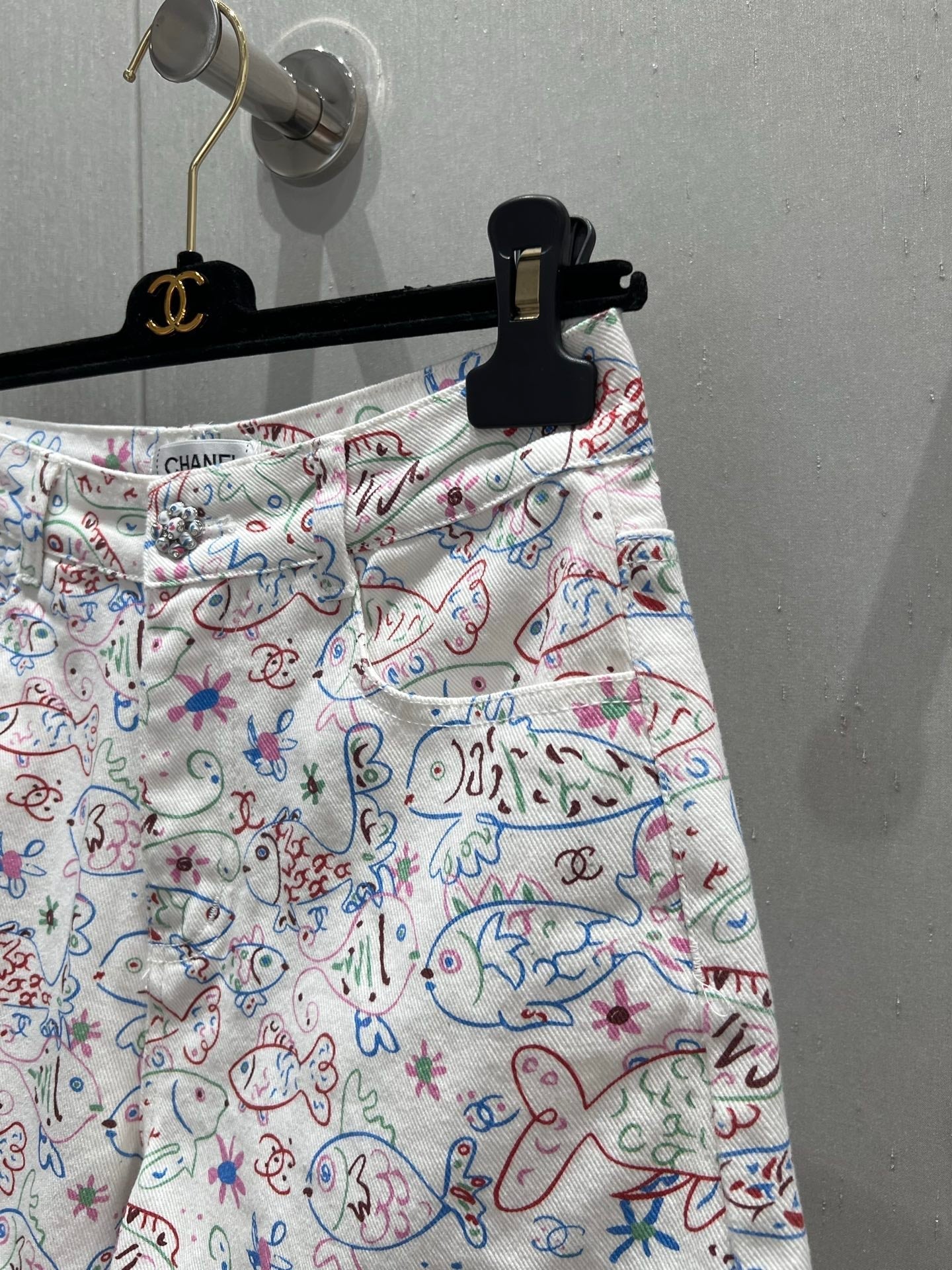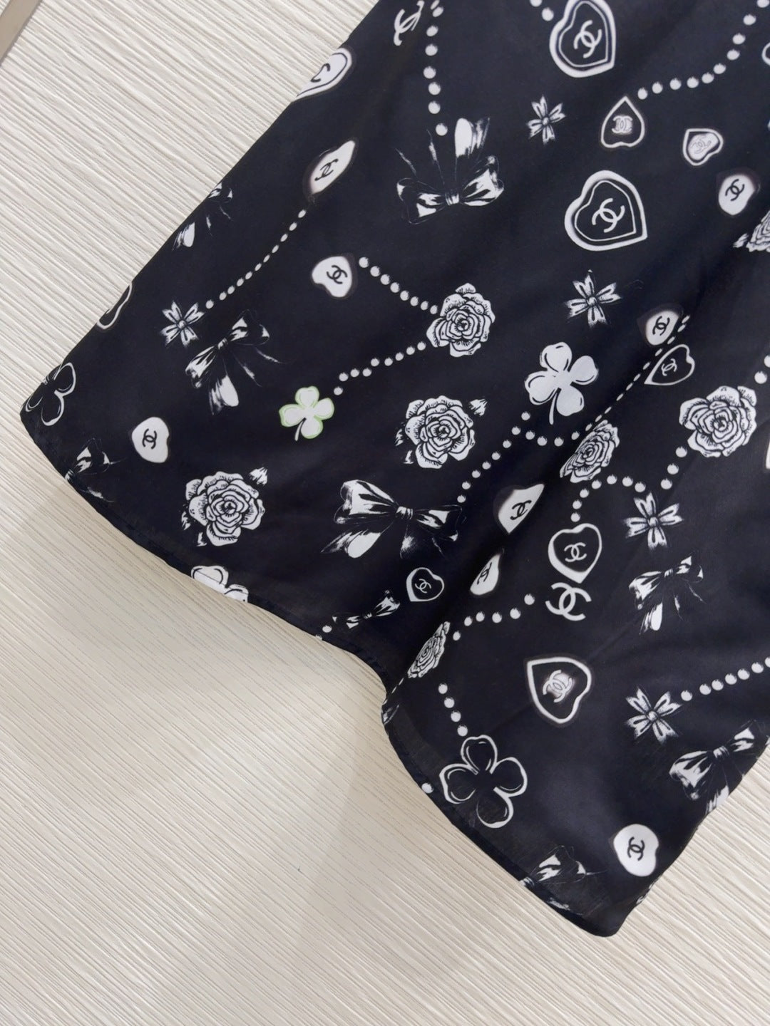 CC 2025 Double C Printed Skirt Black White Polyester Fiber