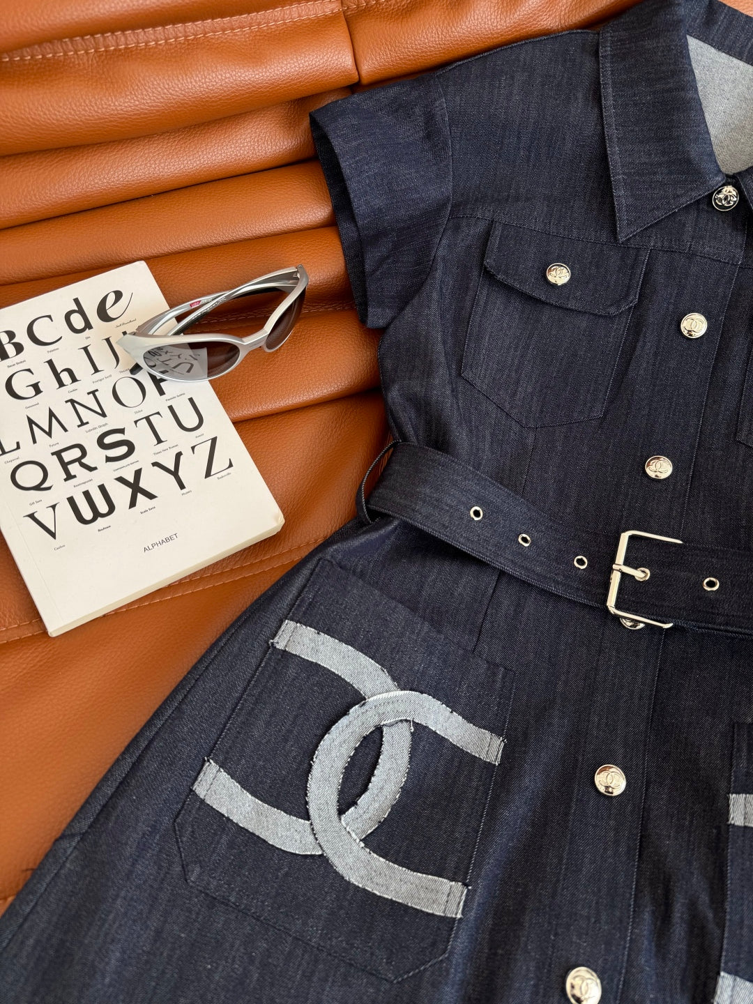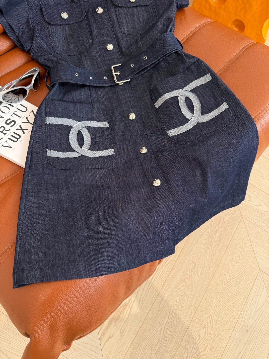 CC 25 Embroidered Short Skirt Blue Denim Cotton