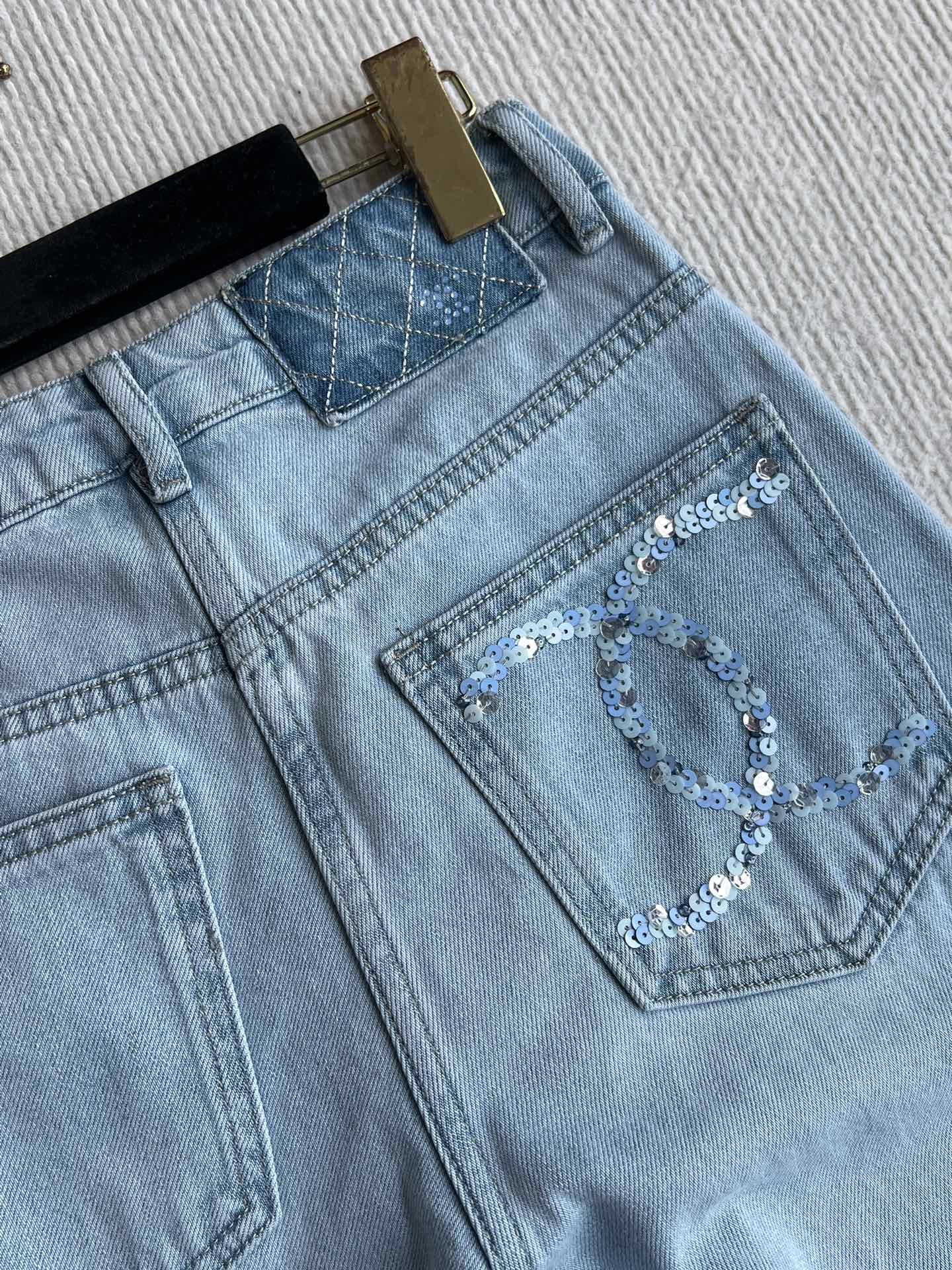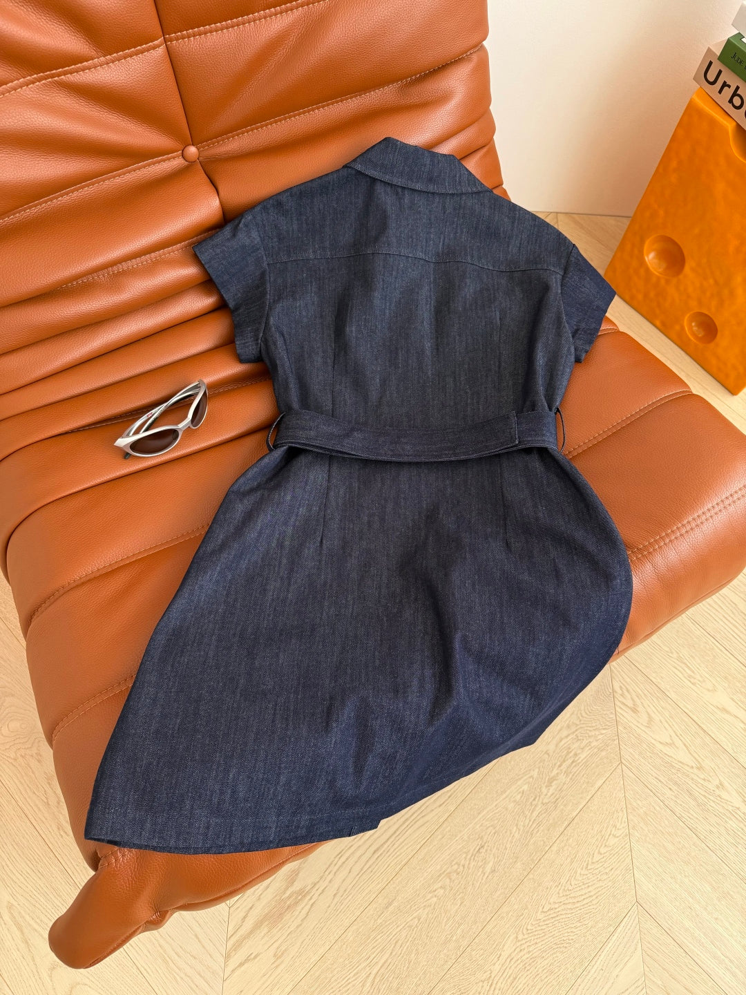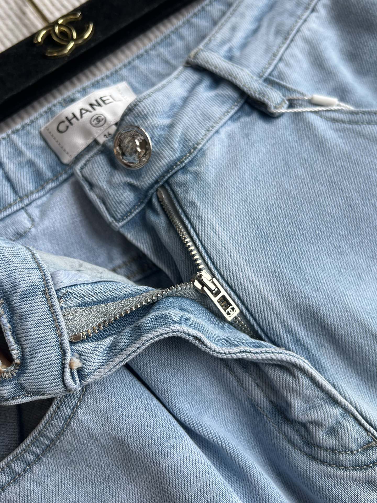 CC 25 Single-breasted Short Skirt Light Blue Denim Cotton