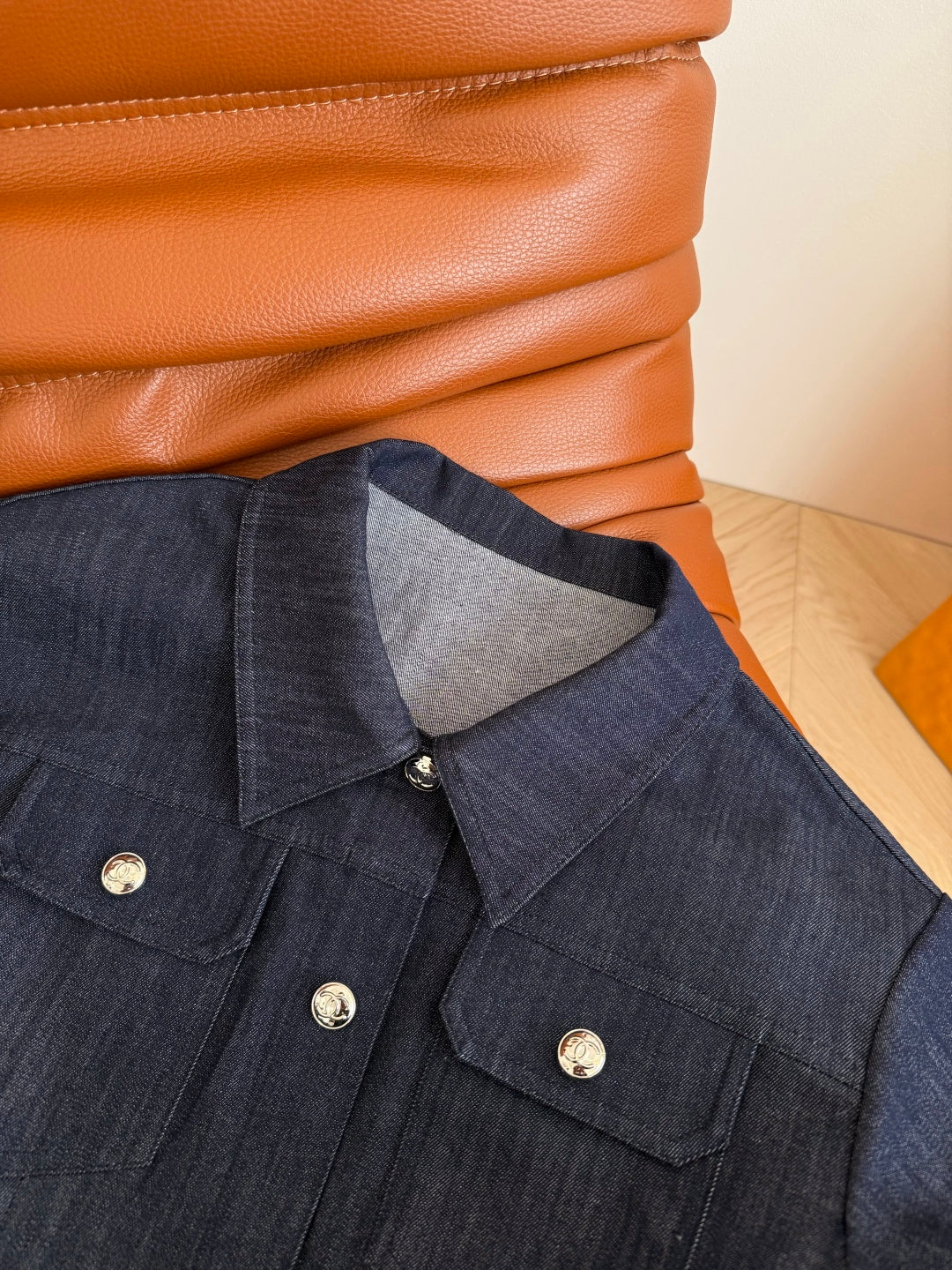 CC 25 Round Neck Short-sleeved Jacket Light Blue Denim Cotton