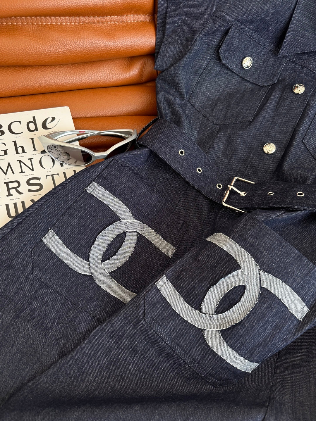CC 25 Embroidered Vest Jacket Blue Denim Cotton