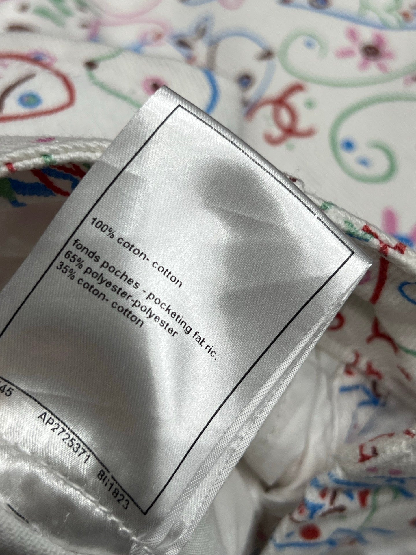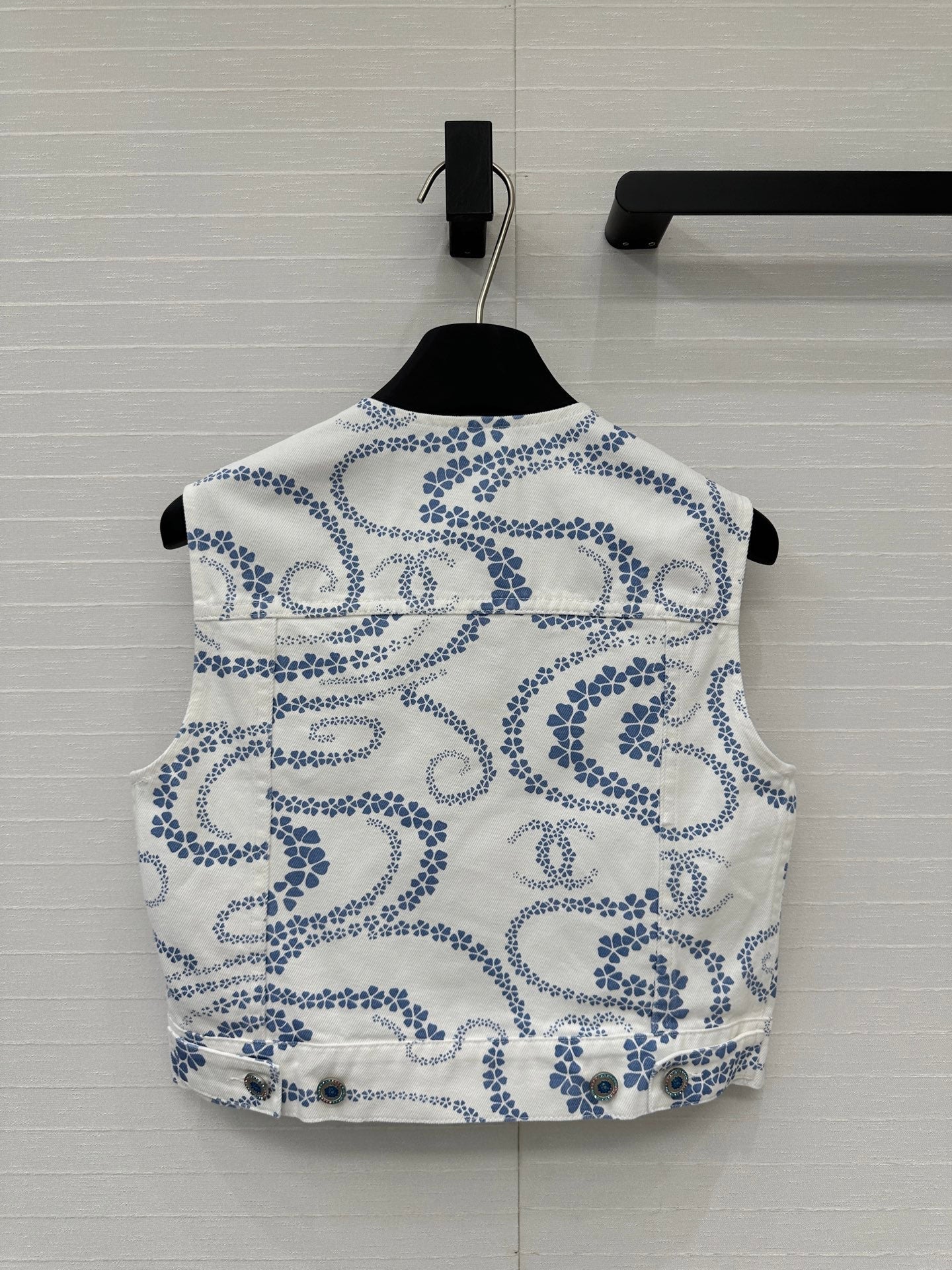 CC 25 Printed Denim Vest Jacket Blue White Cotton