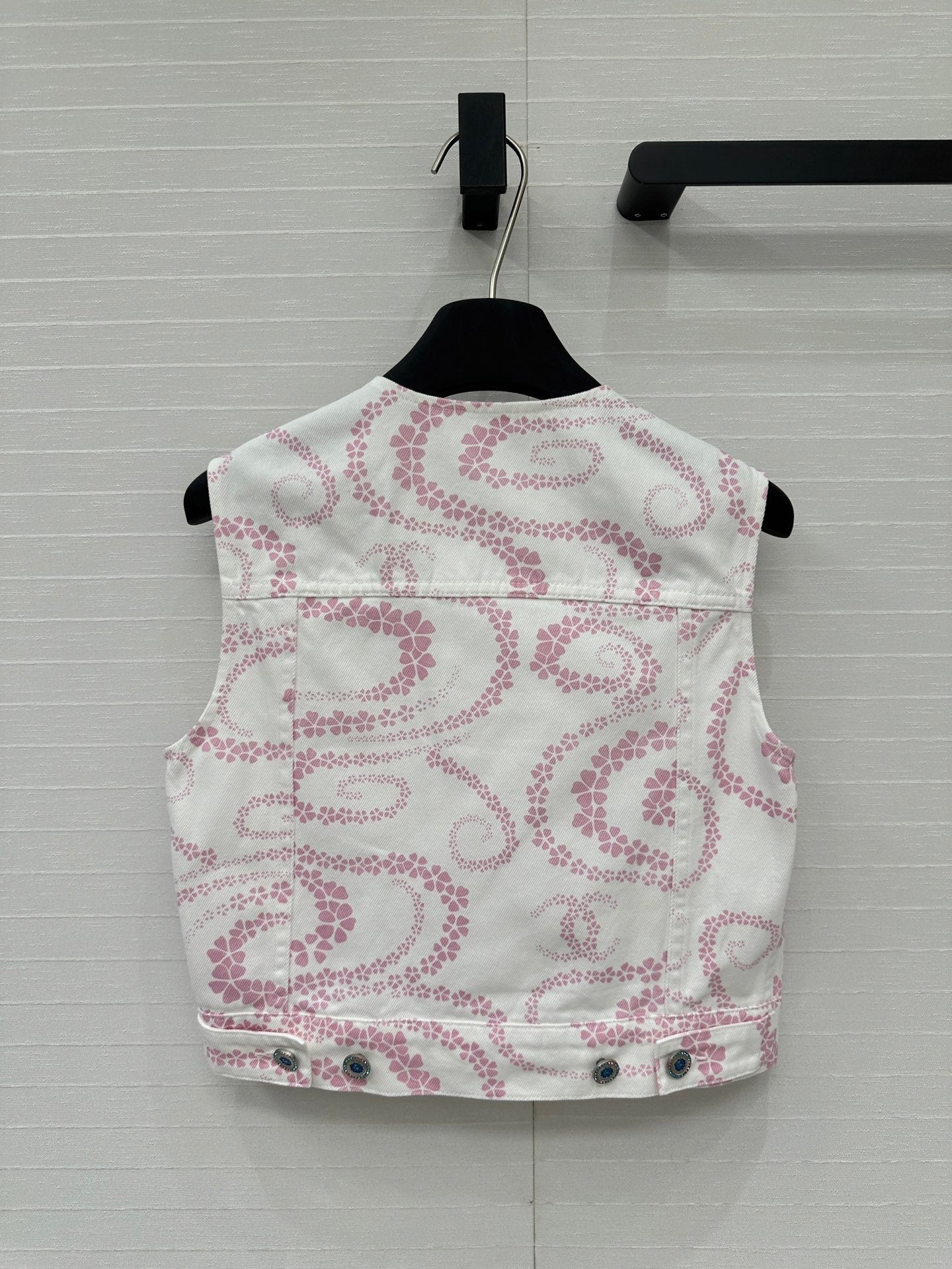 CC 25 Printed Denim Vest Jacket Pink White Cotton