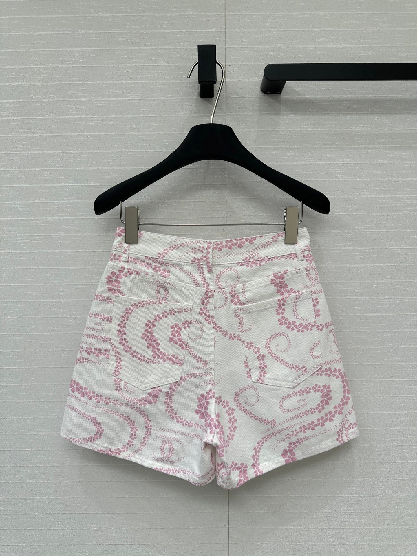 CC 25 Printed Denim Single-breasted Short Skirt Pink White Cotton