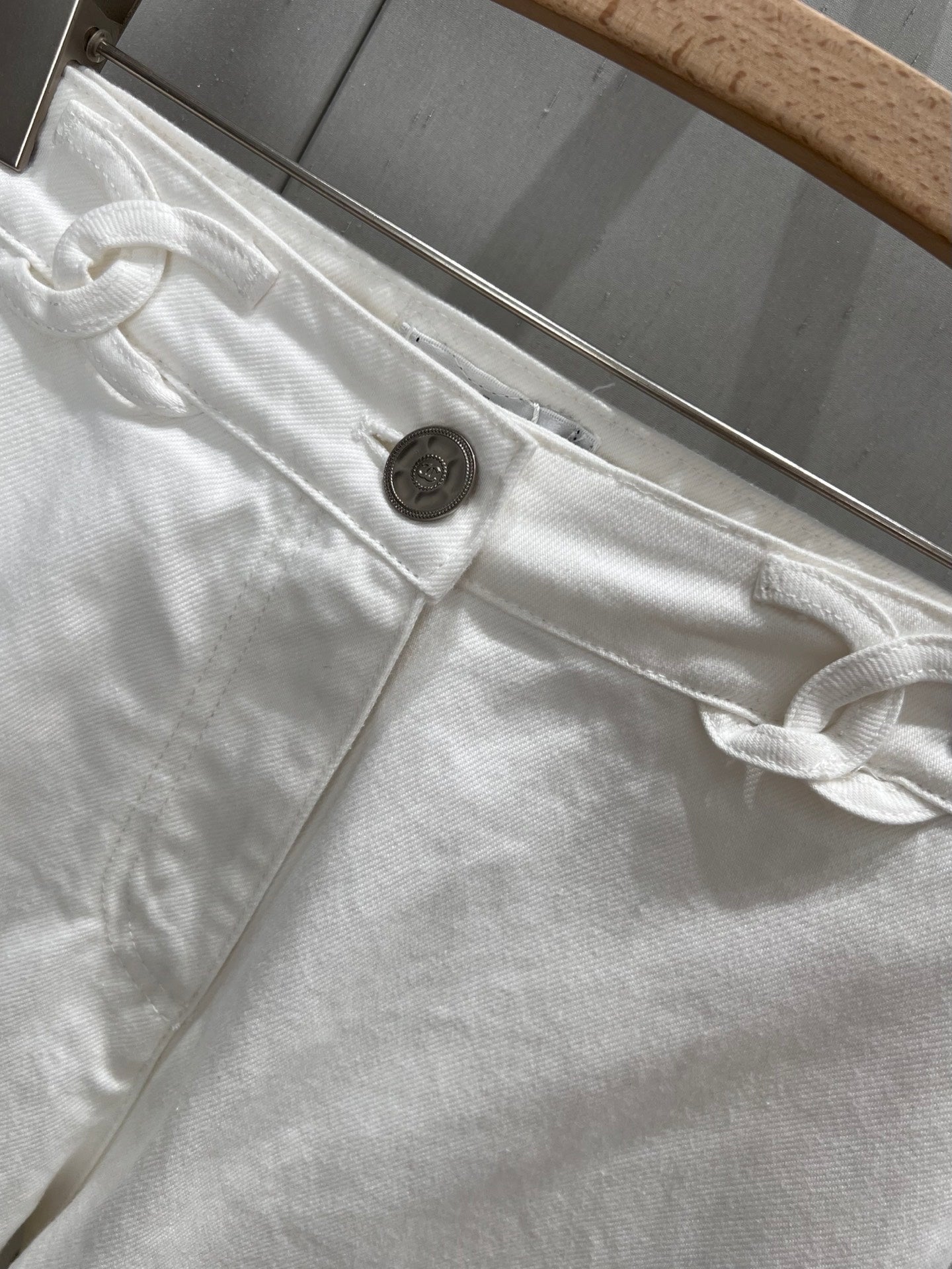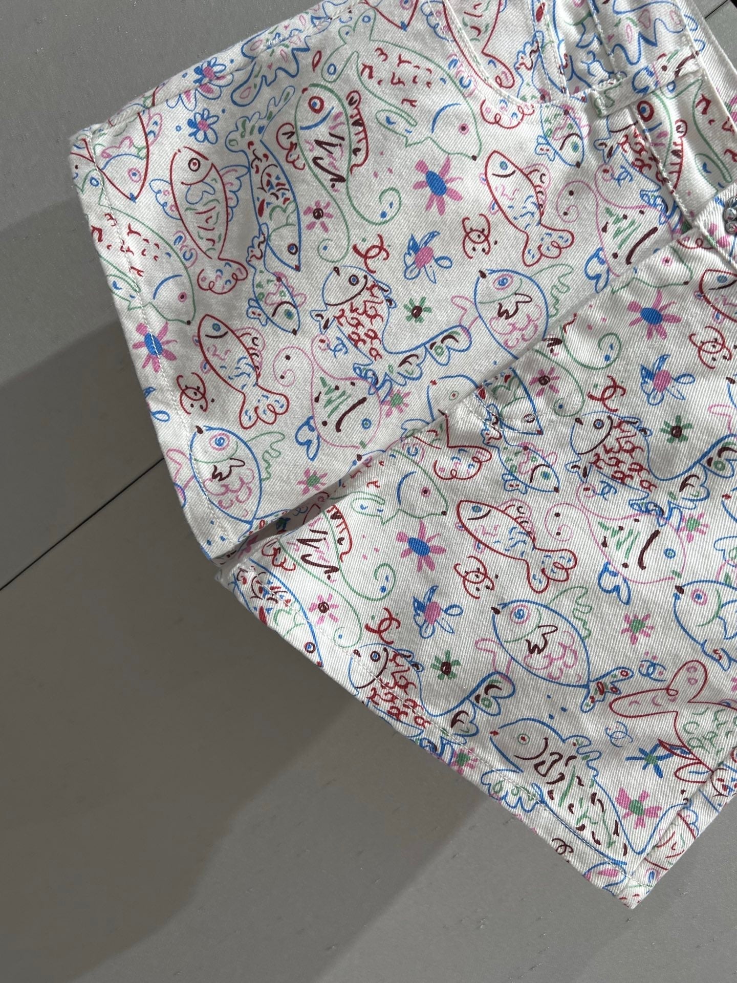 CC 25 Printed Denim Single-breasted Short Skirt Blue White Cotton