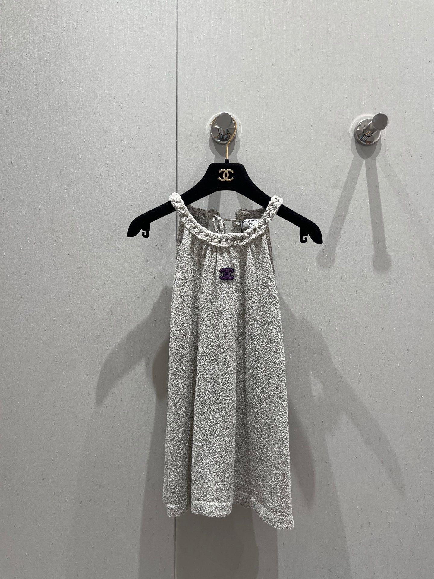 CC 25 Logo Plaid Short-sleeved Dress White Polyester Fiber