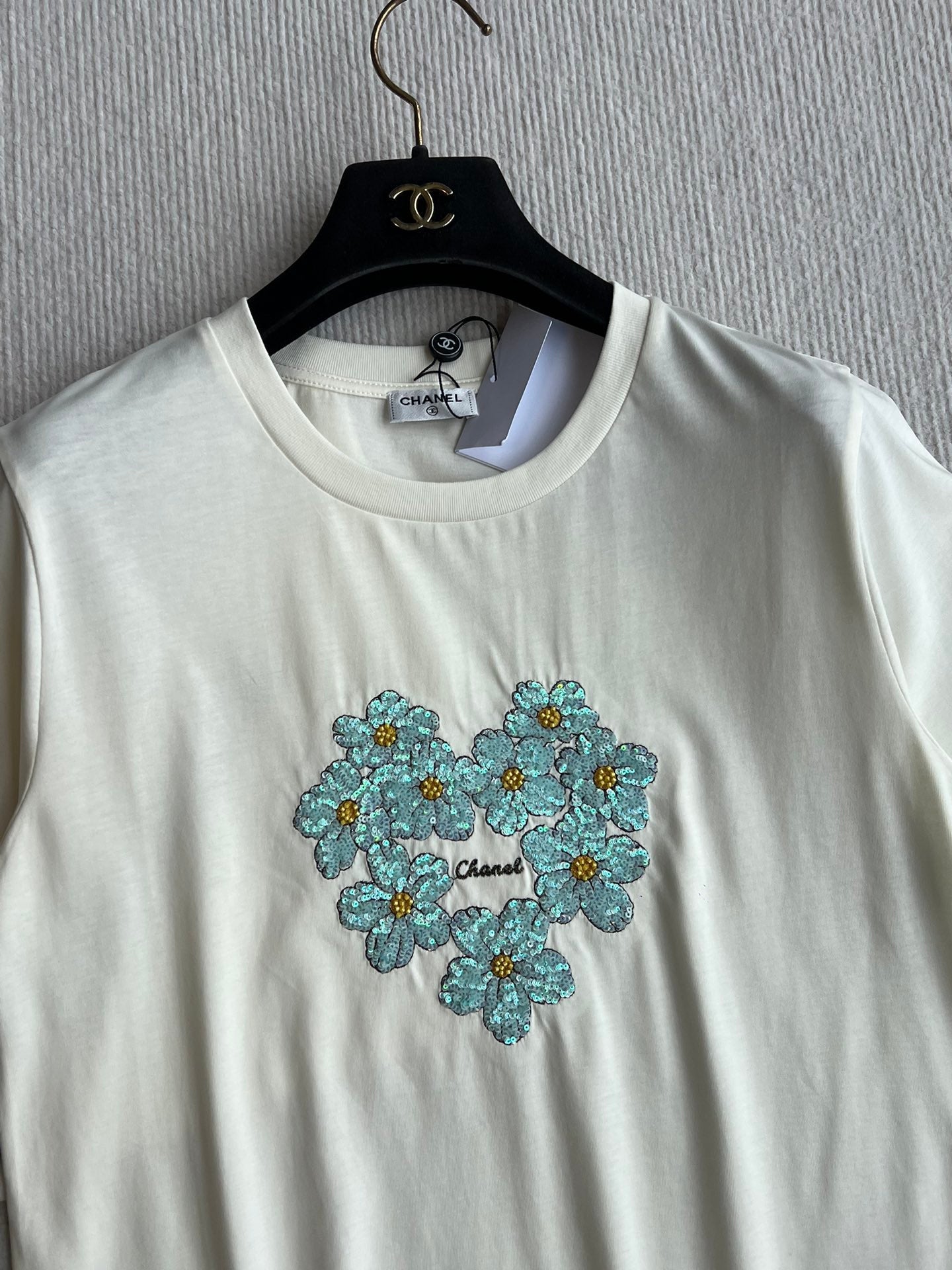 CC 25 Embroidered Beaded Short Sleeve Top Cotton