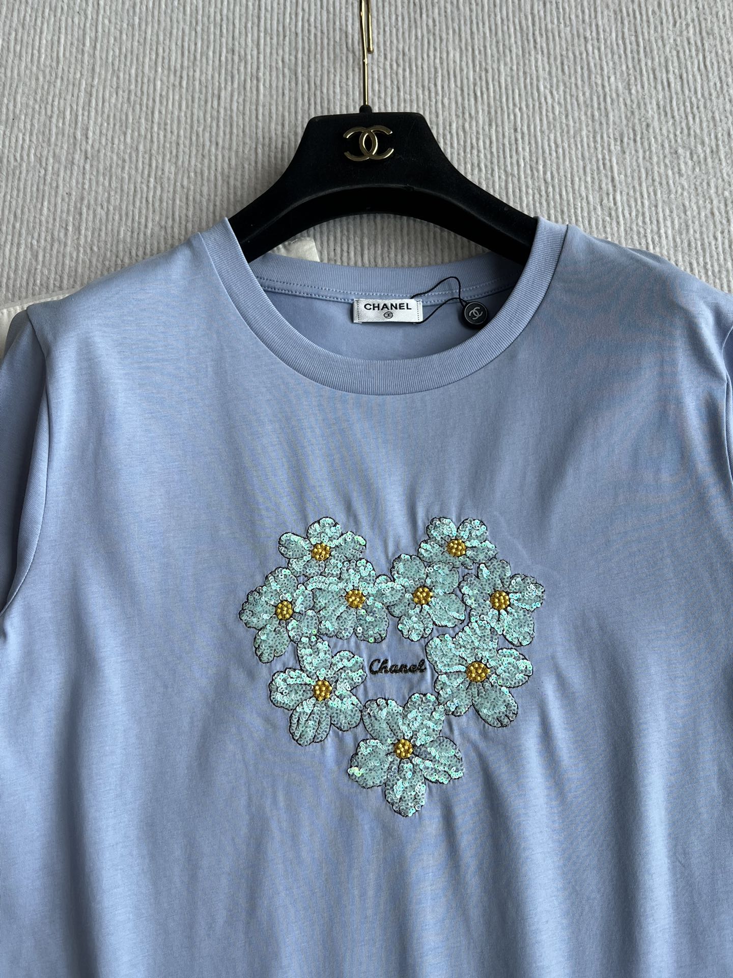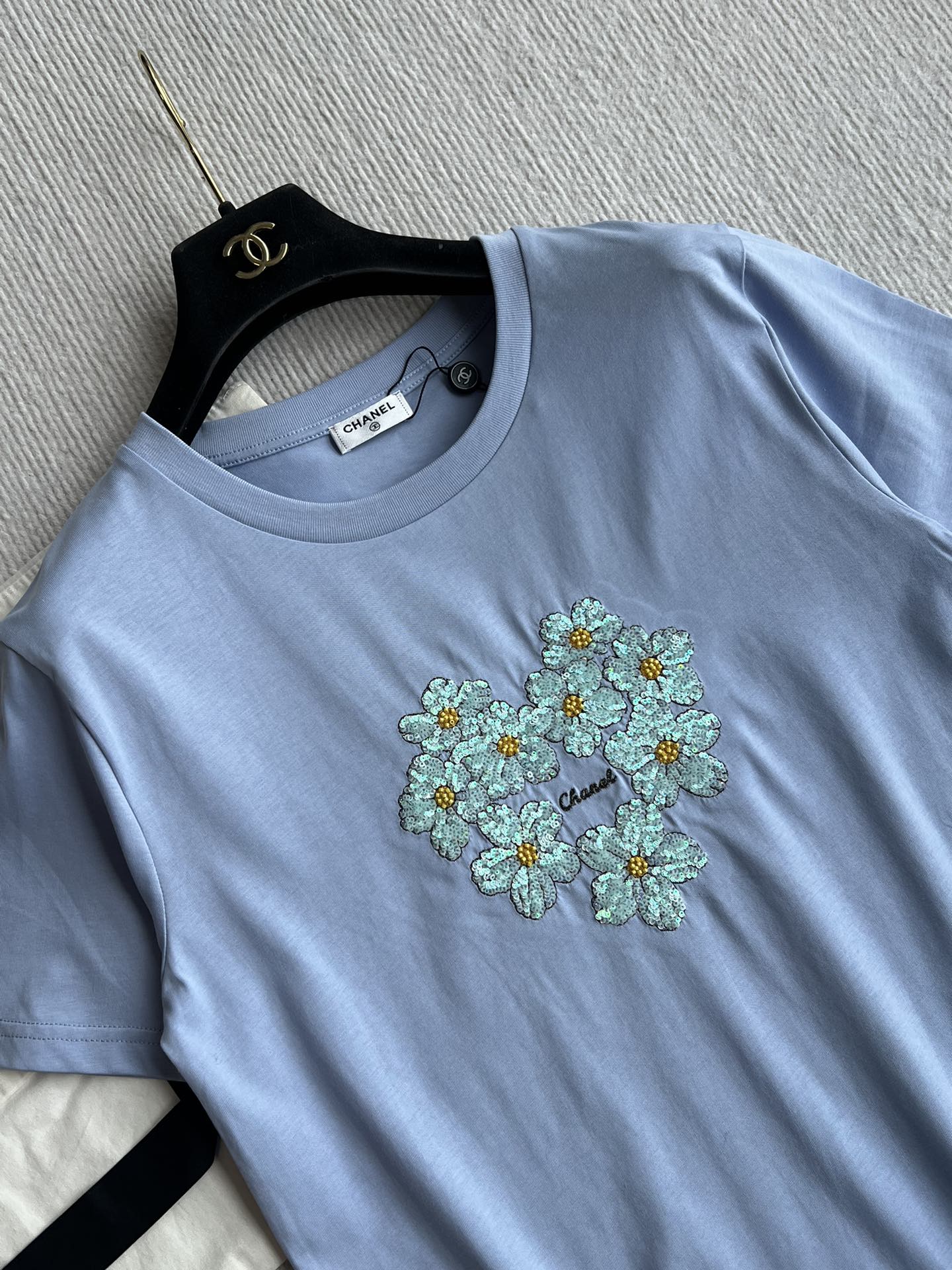 CC 25 Embroidery Round Neck Sleeved Short Cotton