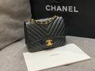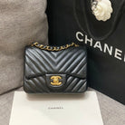 MINI SQUARE FLAP BAG 17CM BLACK LAMBSKIN CHEVRON GOLD HARDWARE