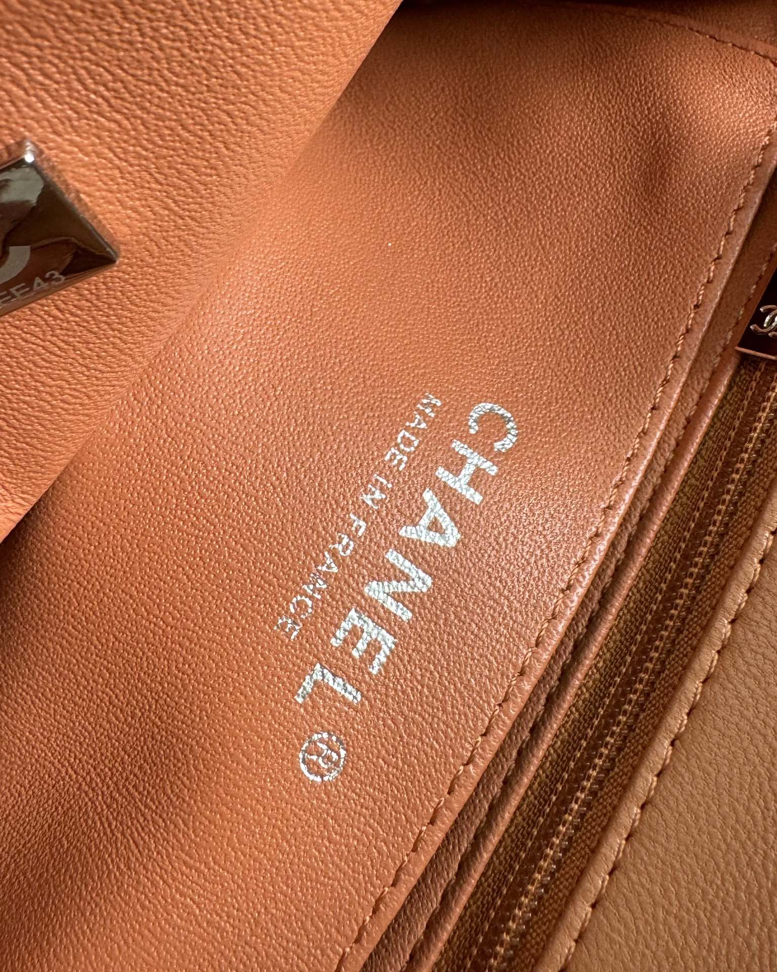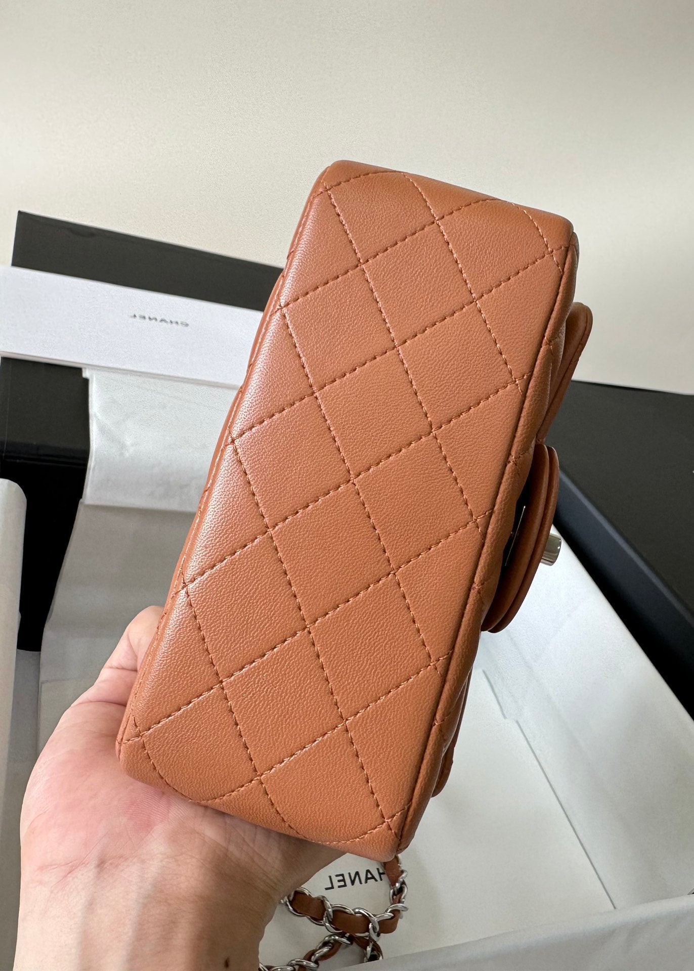 24a mini flap bag top handle 20cm black lambskin silver hardware