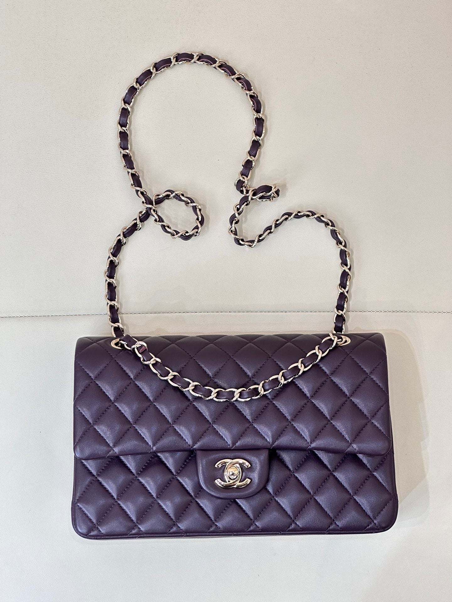 CLASSIC FLAP 23CM VIOLET LAMBSKIN LIGHT GOLD HARDWARE