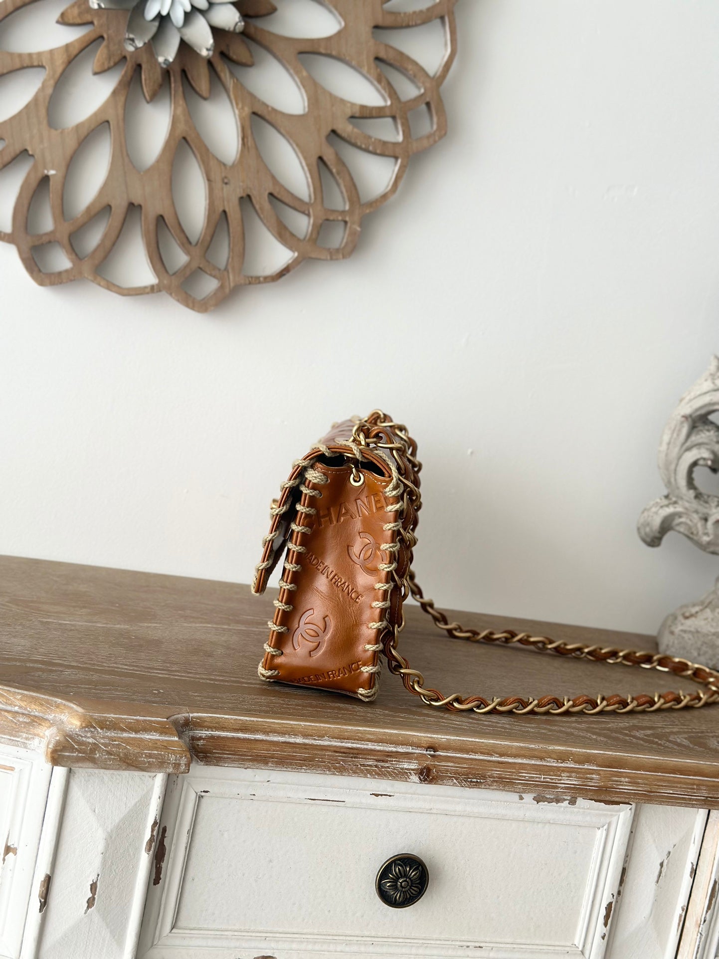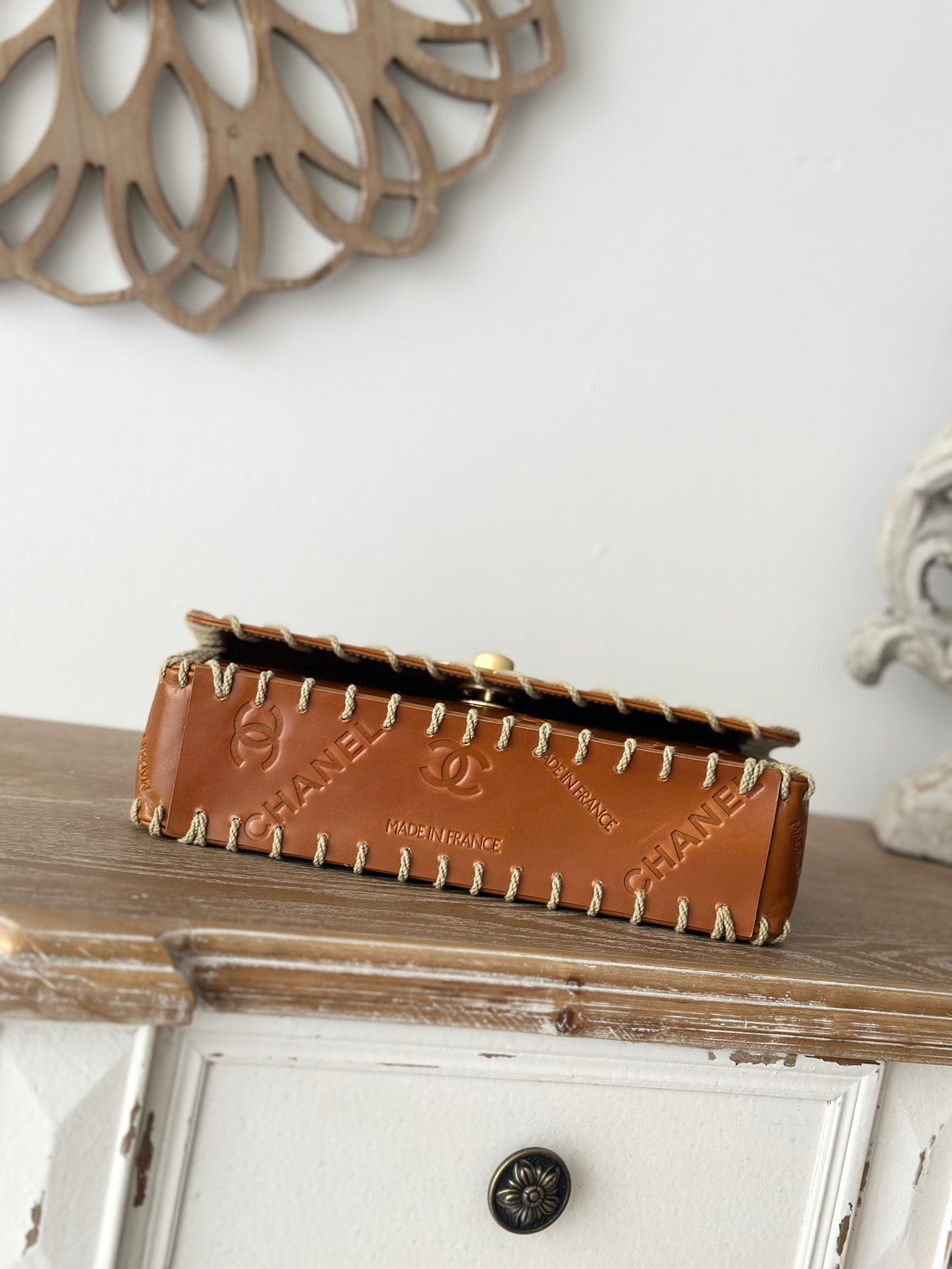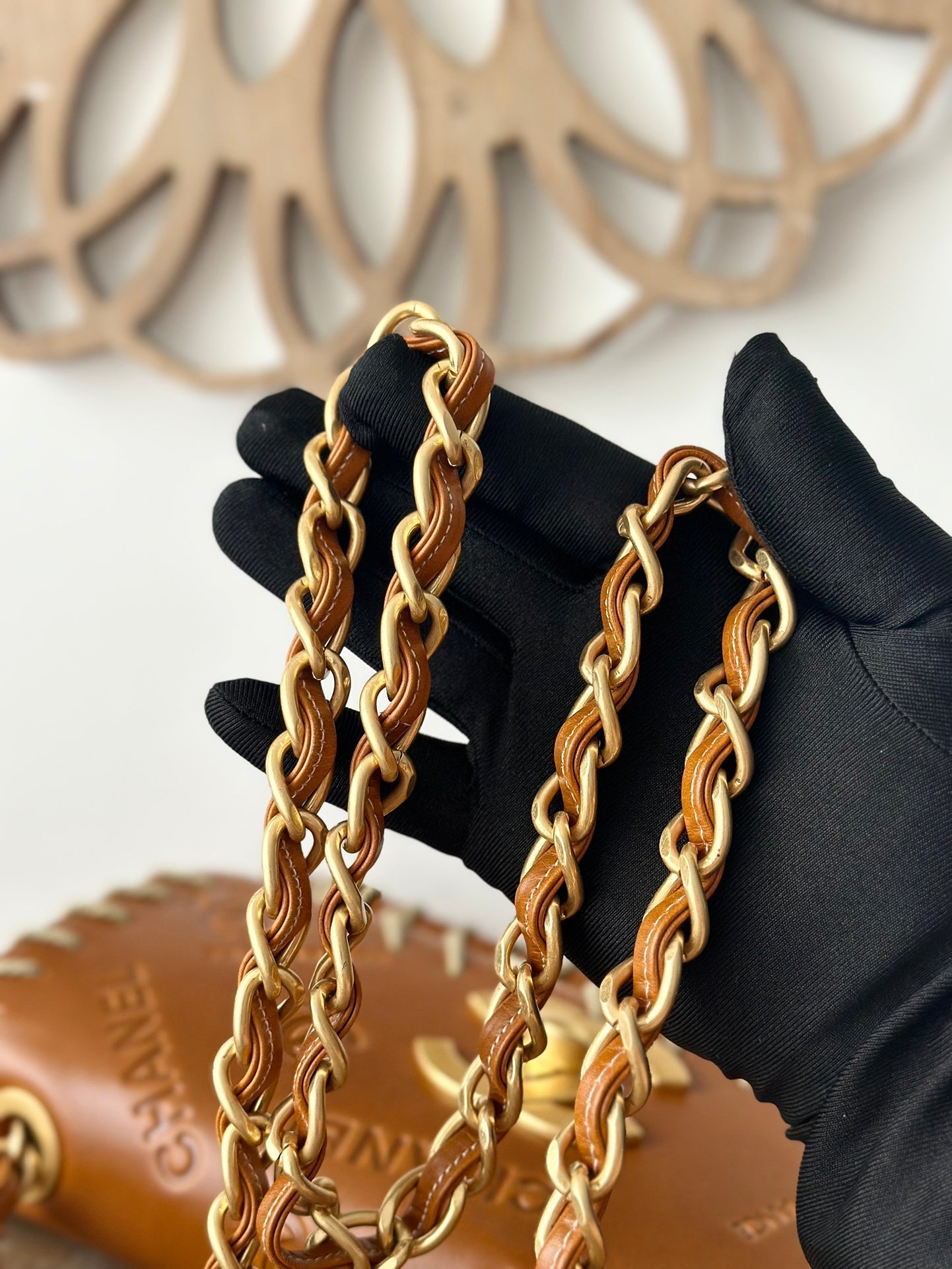 cc 25S Flap Bag 21cm Brown Gold Sequin Calfskin