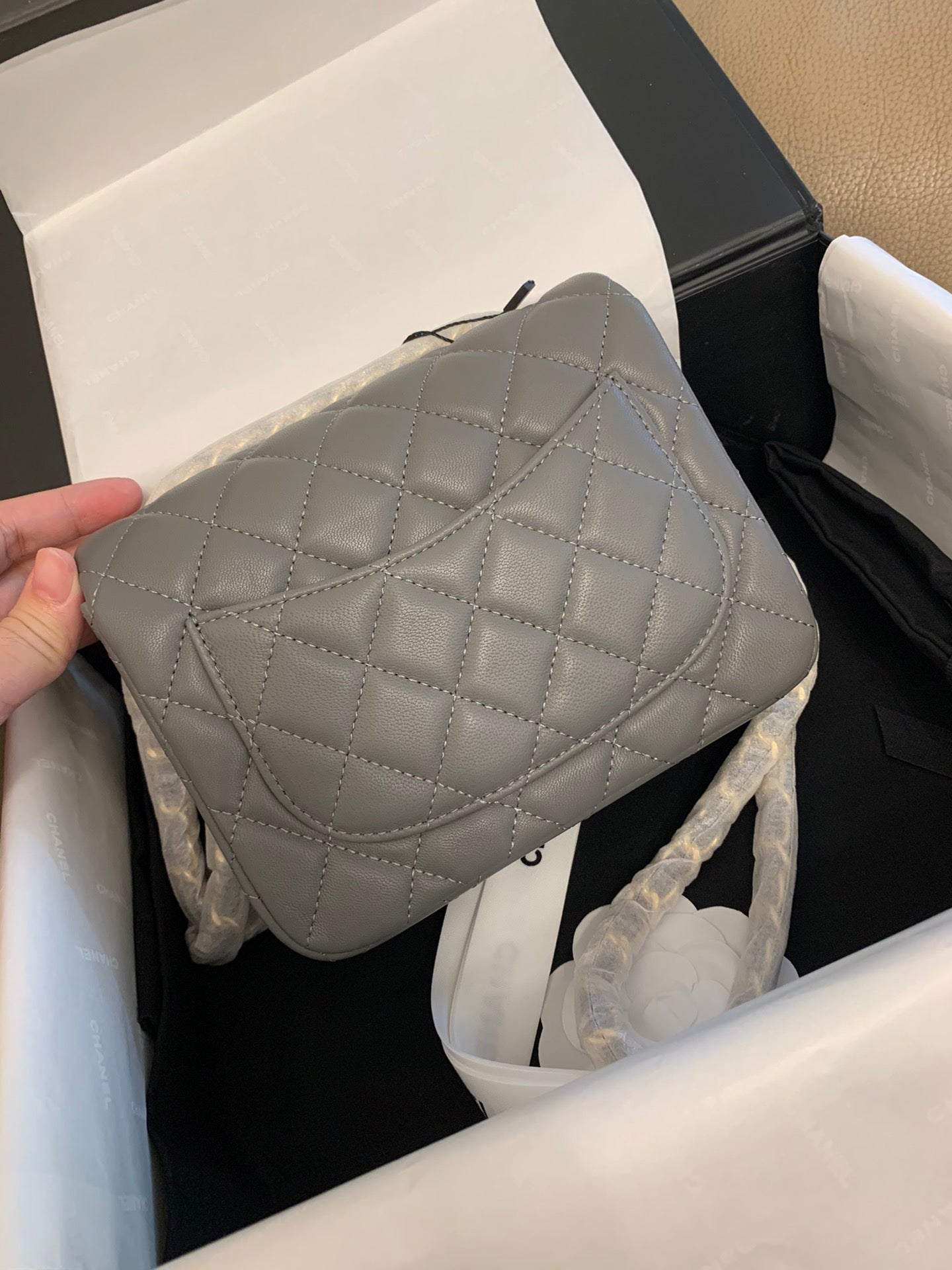 Classic Mini Flap Bag 20cm Grey Lambskin Gold Hardware