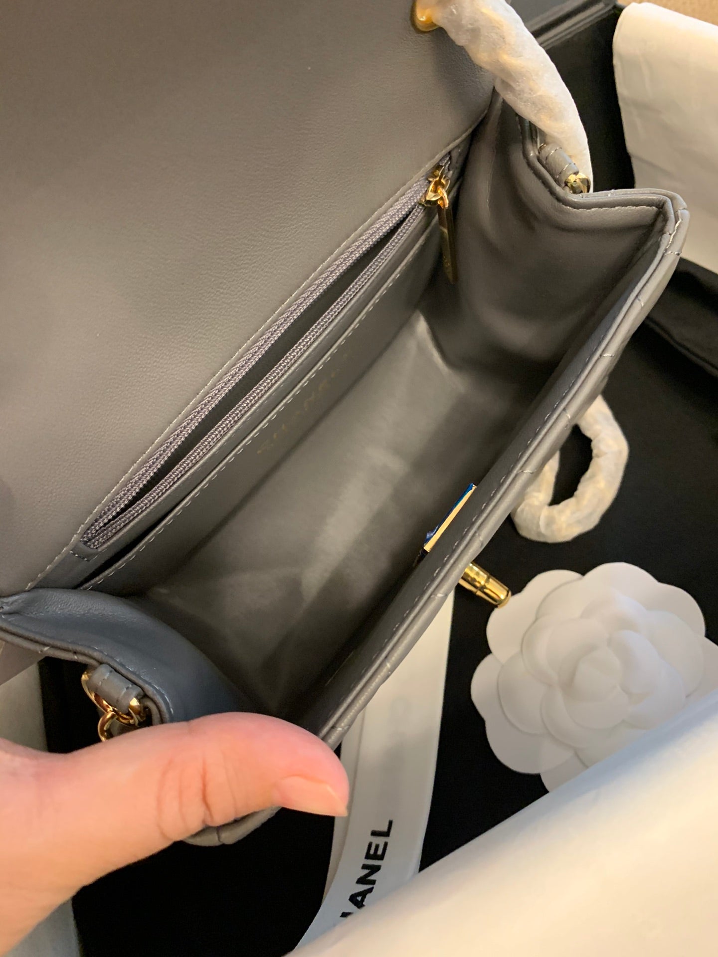 cc 24a flap bag 20cm top handle grey lambskin gold hardware