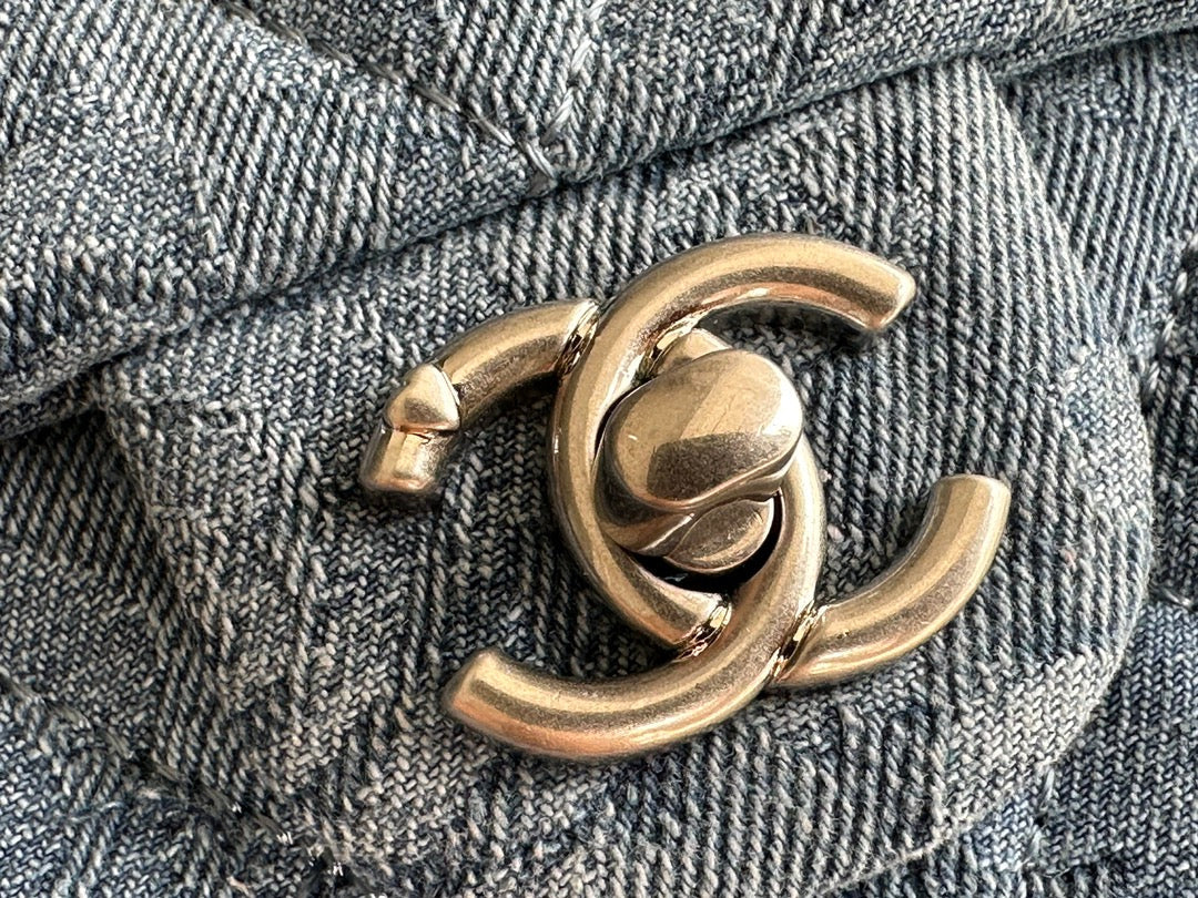 FLAP BAG 17CM GREY LAMBSKIN GOLD HARDWARE