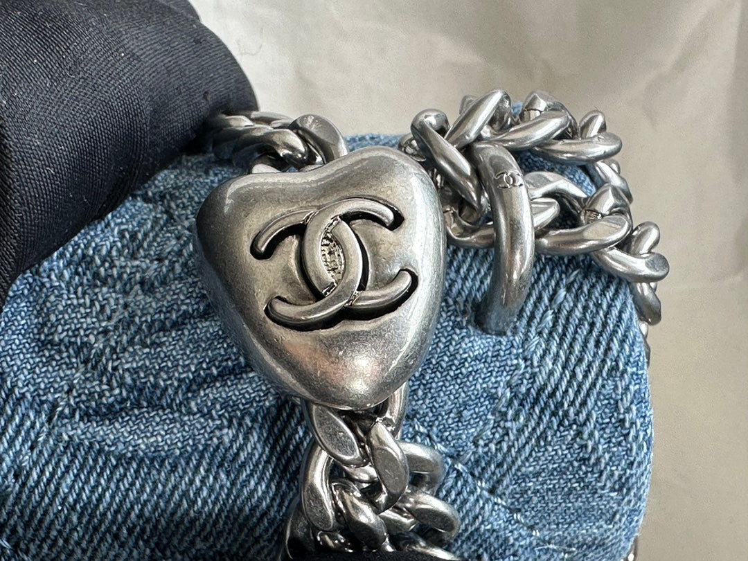 23P Flap Bag 16cm Grey Calfskin Siver Hardware