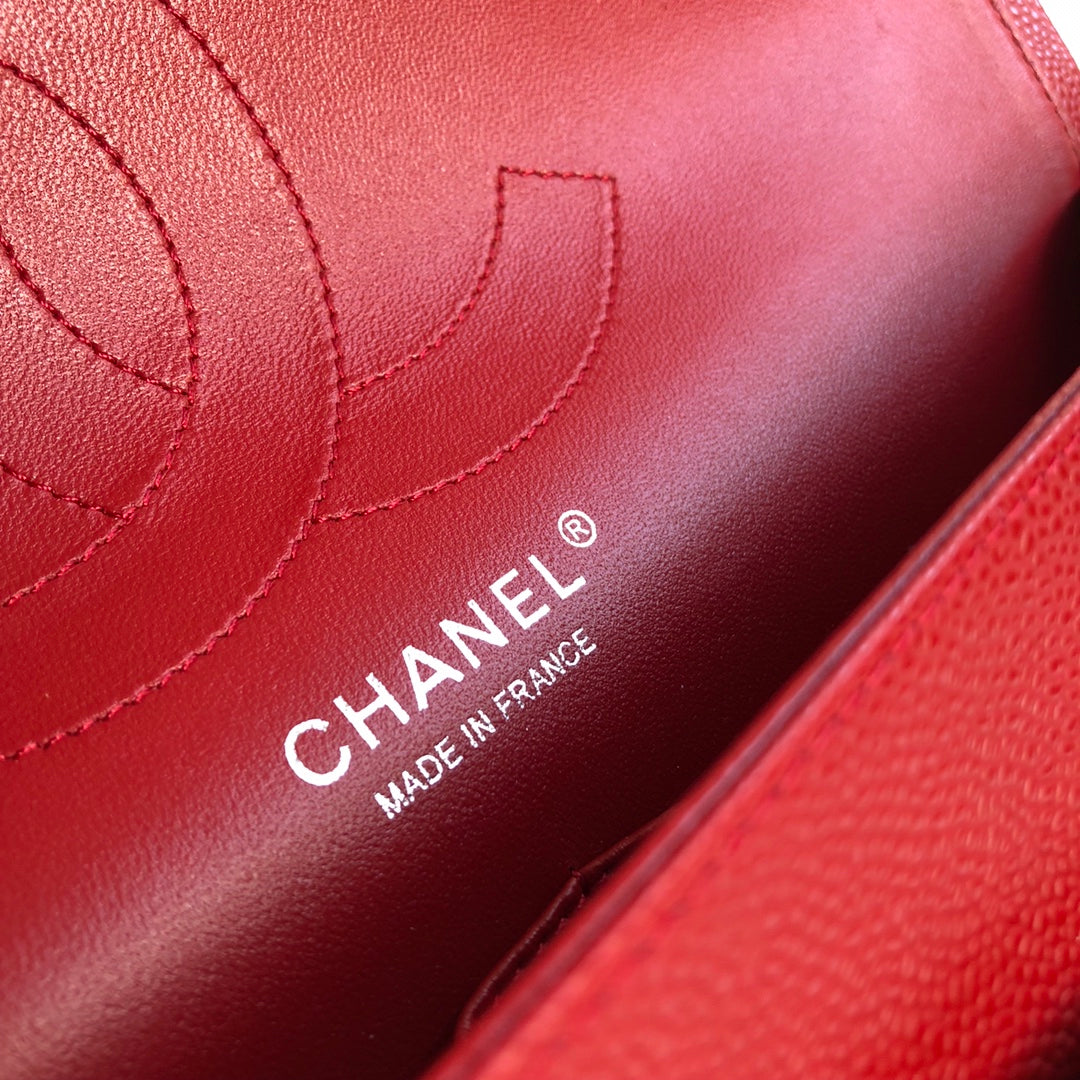 MINI RECTANGLE FLAP BAG 20CM RED CAVIAR SILVER HARDWARE