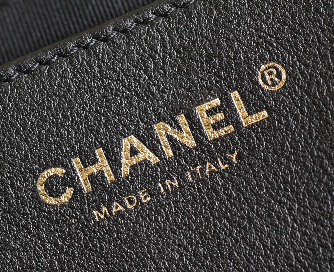 Chanel 2025 Hobo Bag 22cm Black Gold Grained Calfskin