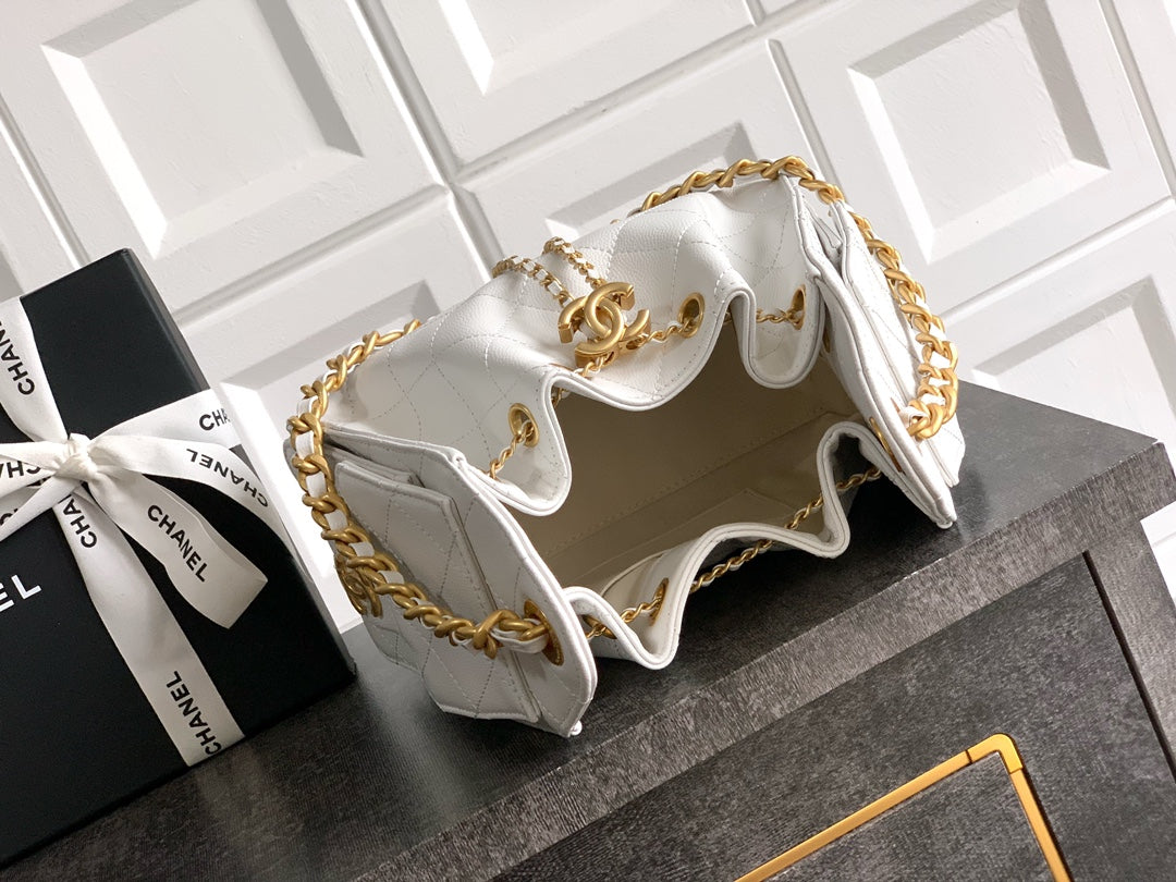 Chanel 2025 Hobo Bag 40cm White Grained Calfskin