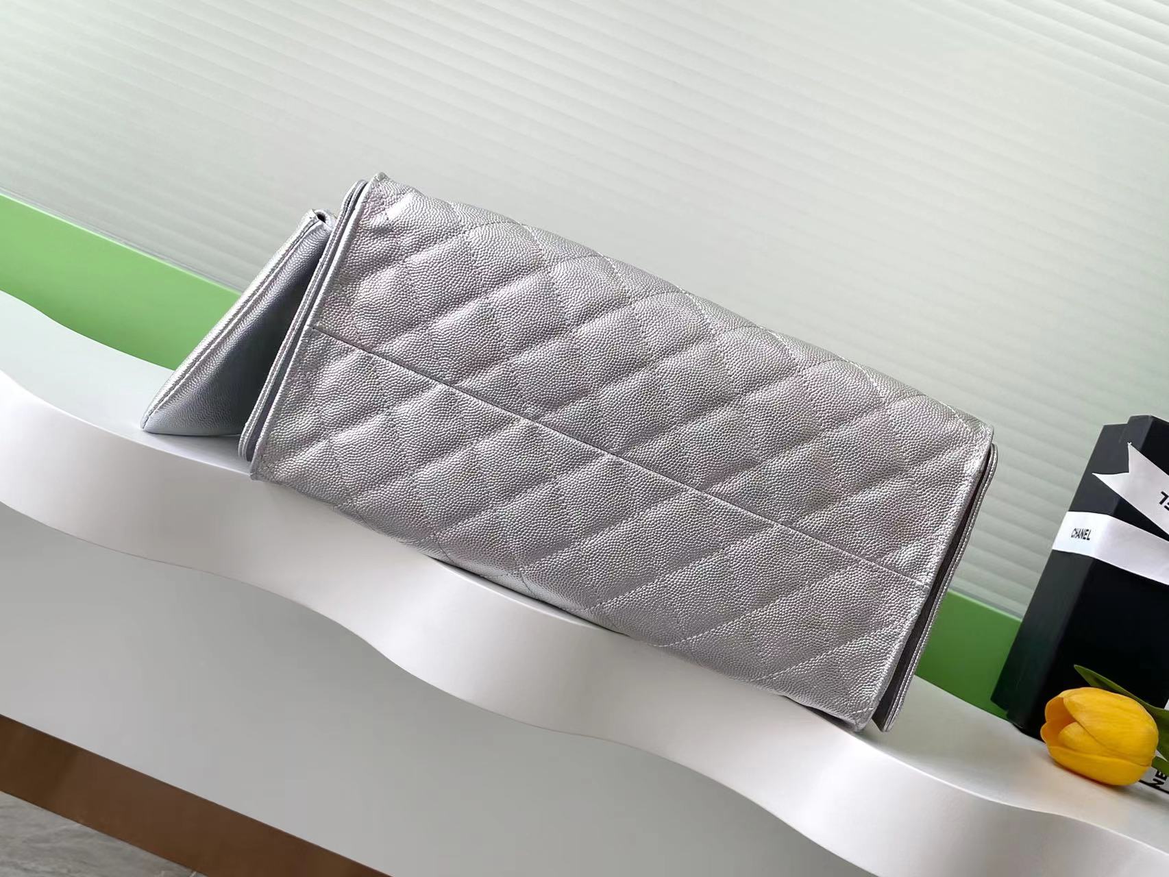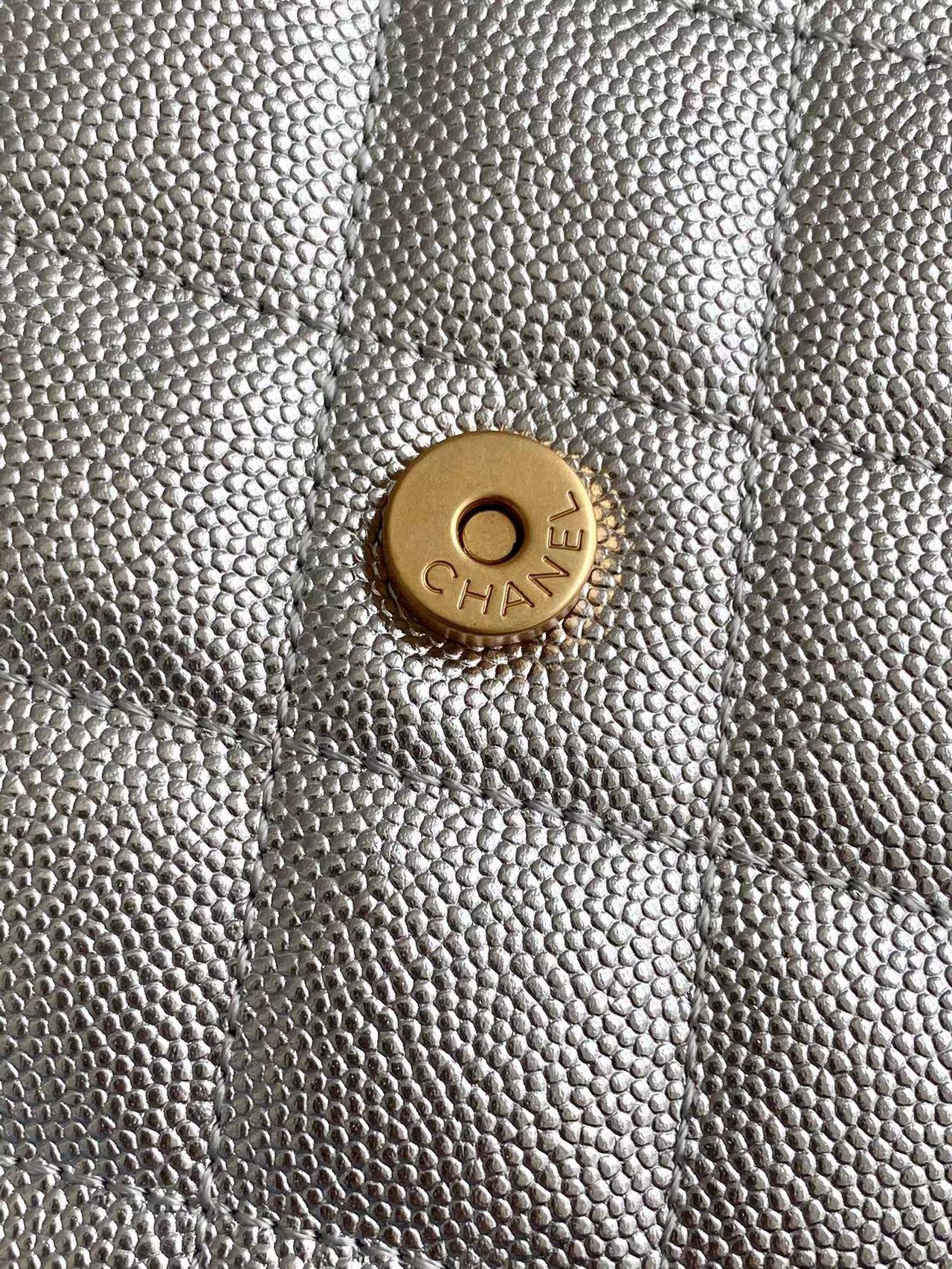 CC 25C Hobo Bags 40cm Silver Metalic Grained Calfskin
