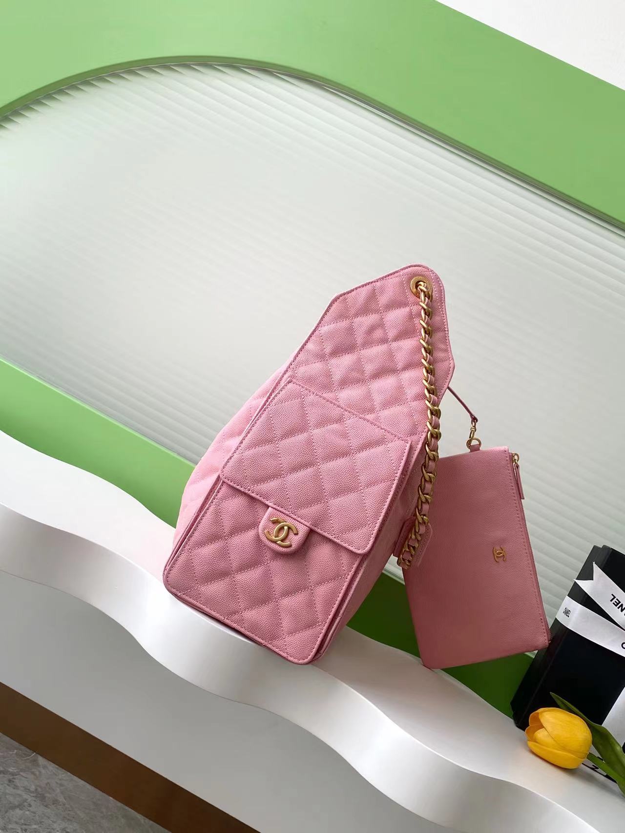 CC 25C Hobo Bags 20cm Light Pink Grained Calfskin