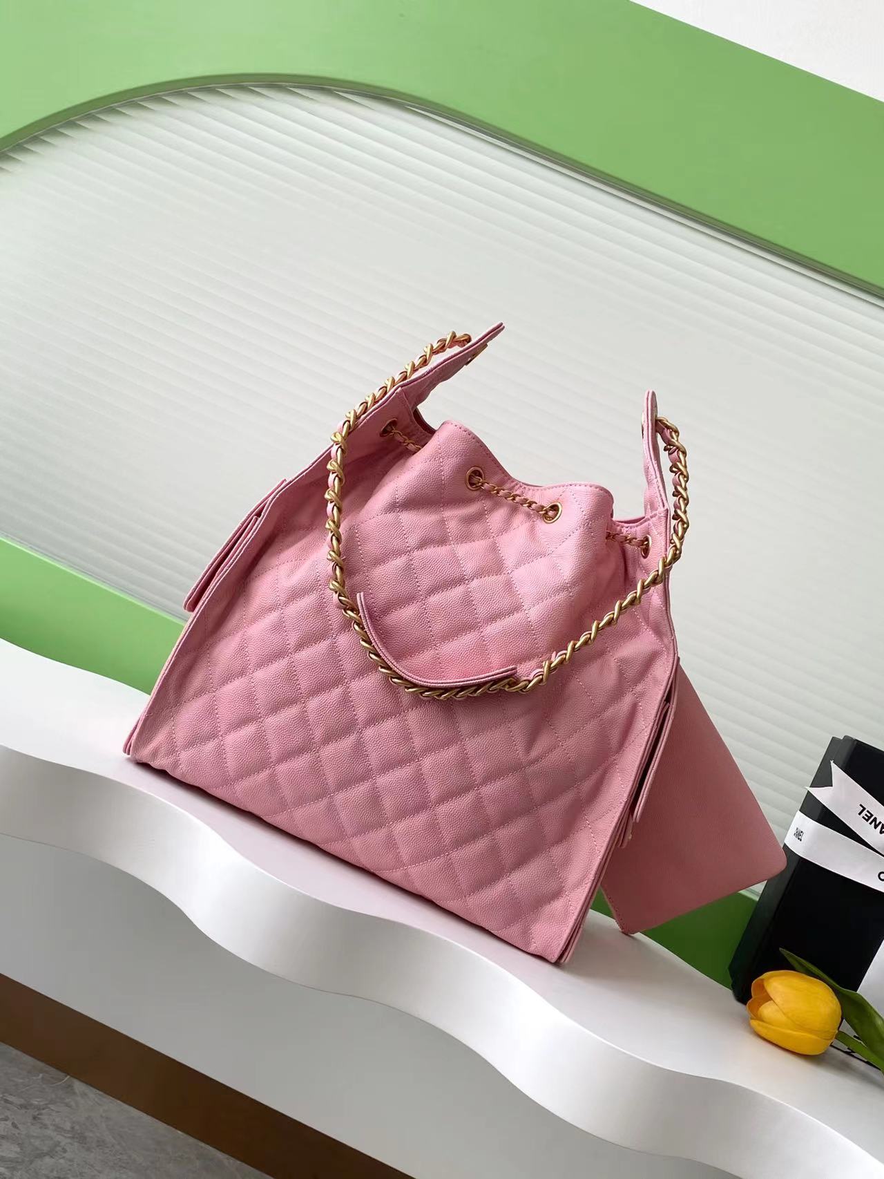 CC 25C Hobo Bags 40cm Pink Grained Calfskin