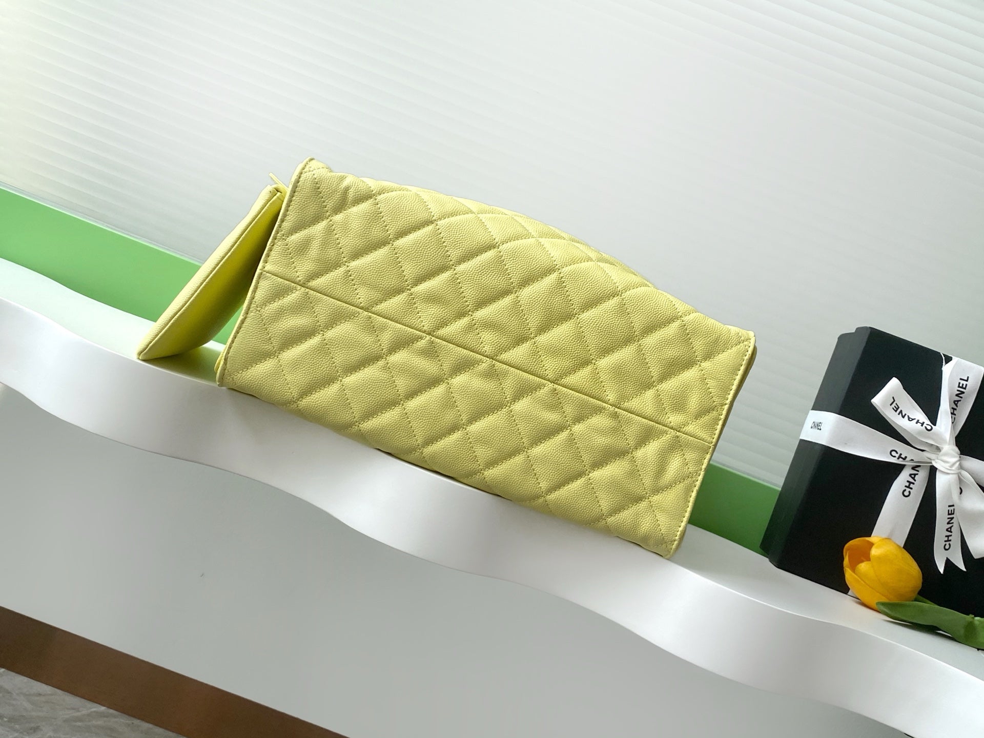 Chanel 2025 Hobo Bag 40cm Light Yellow Caviar Leather 344300