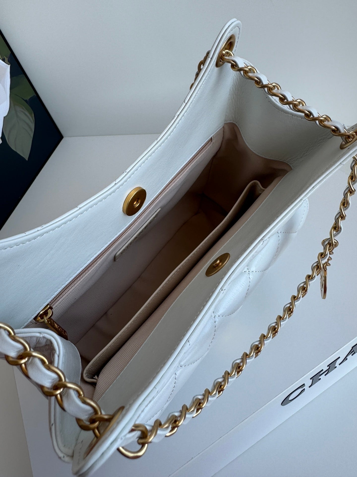 24a cc 22 hobo bag 20cm black lambskin pearl gold hardware