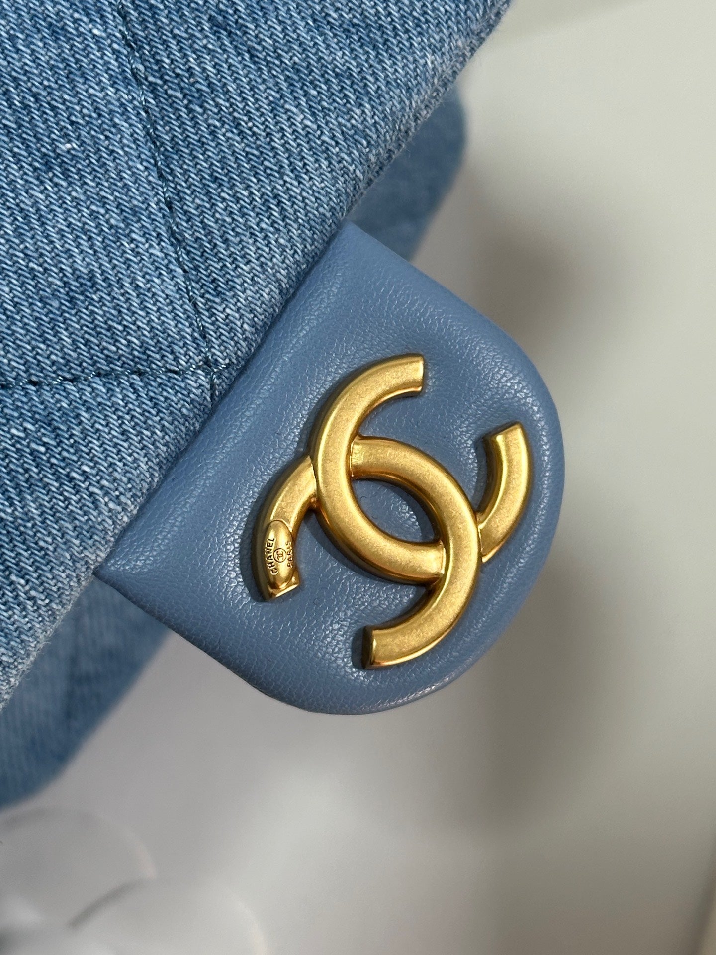 CC 23C Small Hobo Bag 21.5 Light Cloud Blue Lambskin Gold Hardware