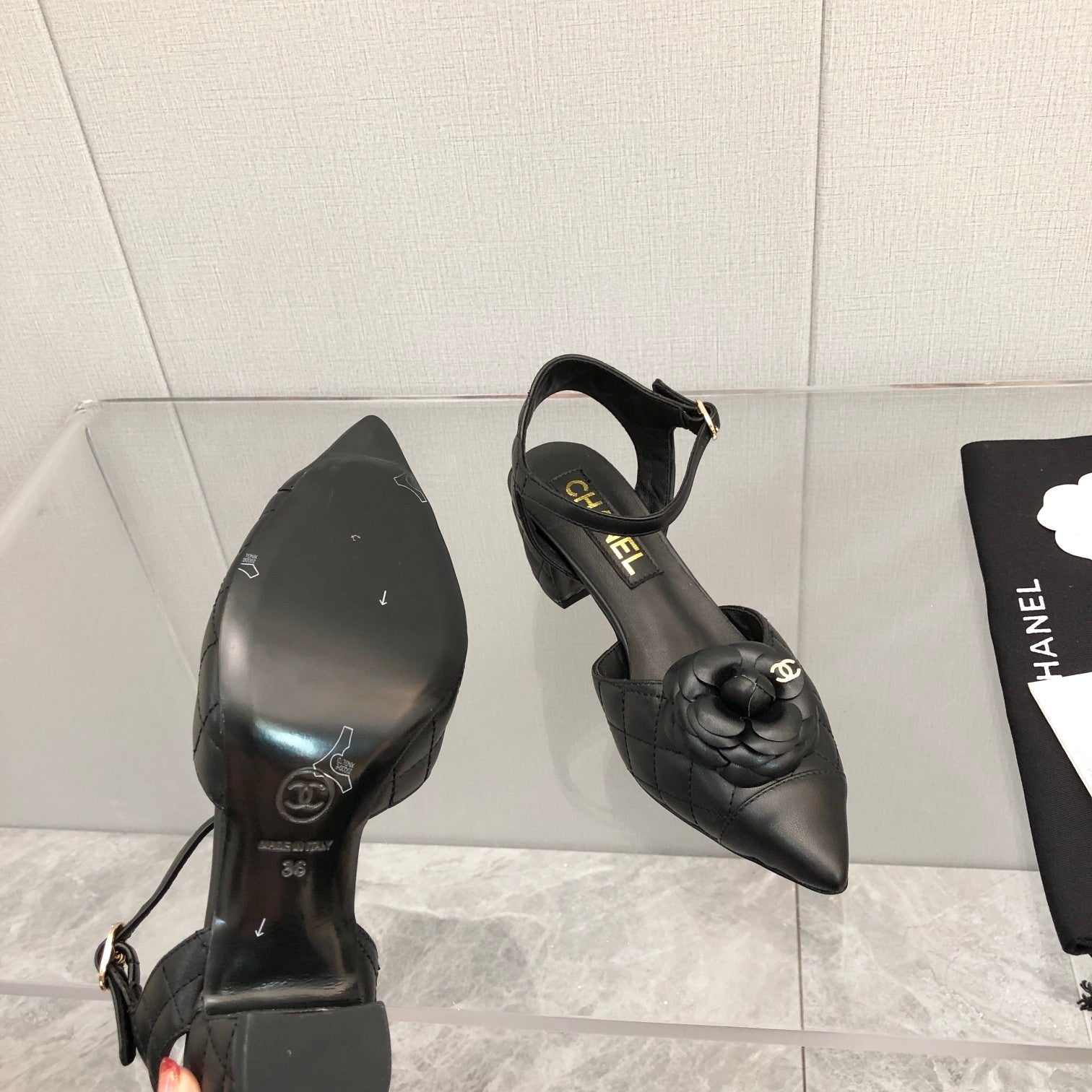 CC 25C 5CM Slingback Flats Black Leather 213242