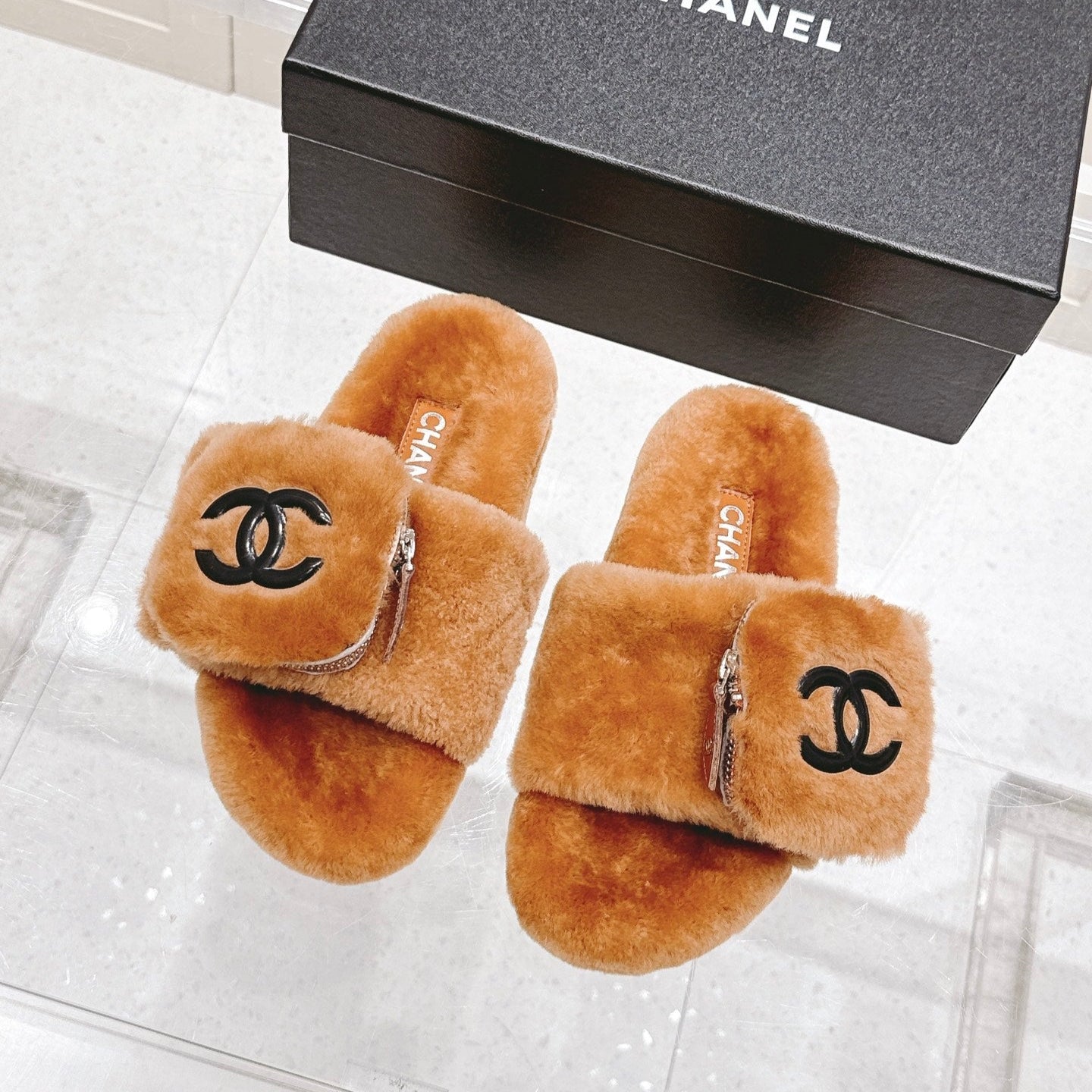 Chanel 25A Early Autumn Slippers Brown Wool 393080