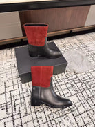 Chanel 25A Winter New Low Boots Black Red Cowhide 393514