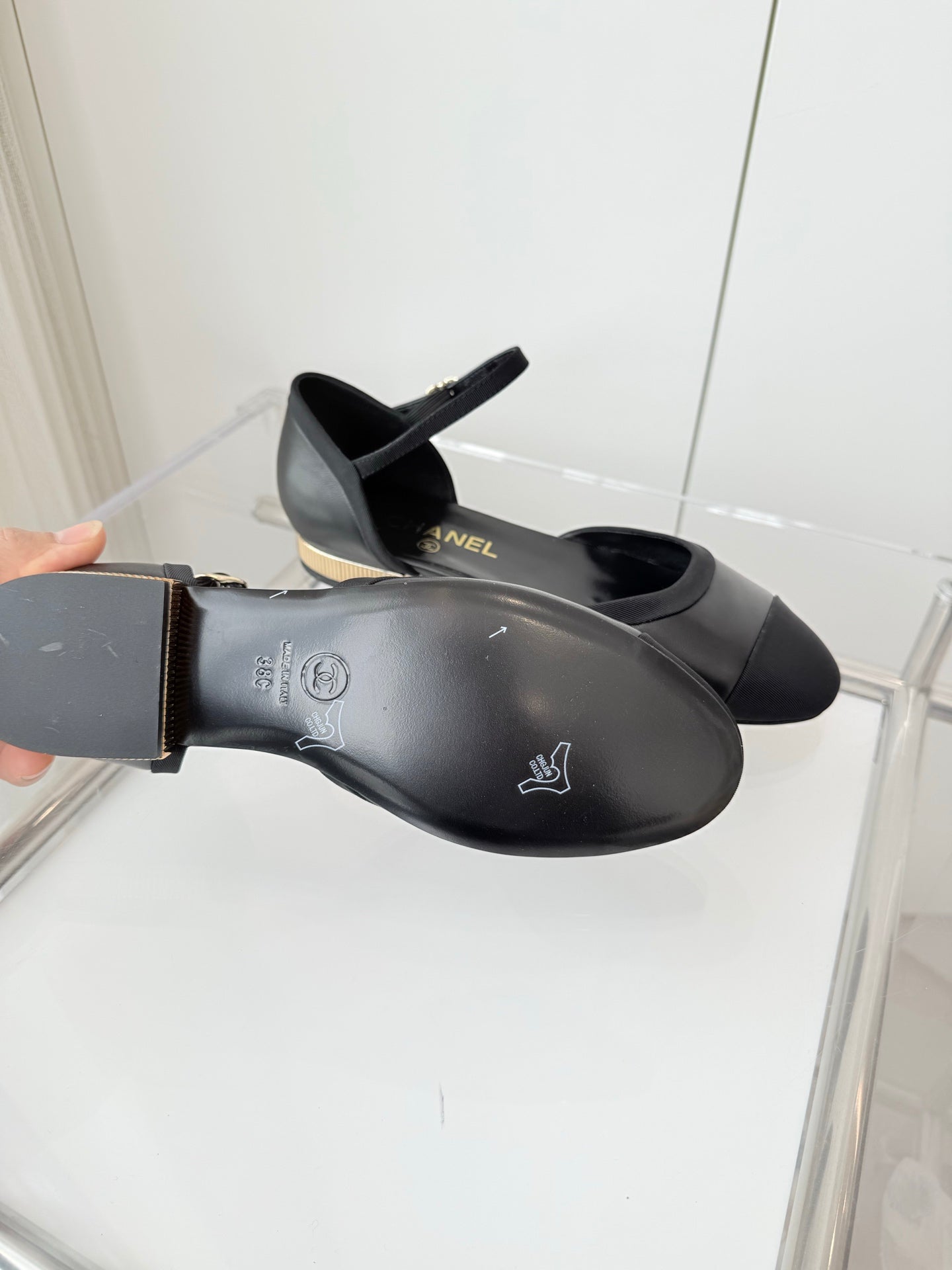 CC 25 Mary Jane Flat Black Leather with Fabric 239412
