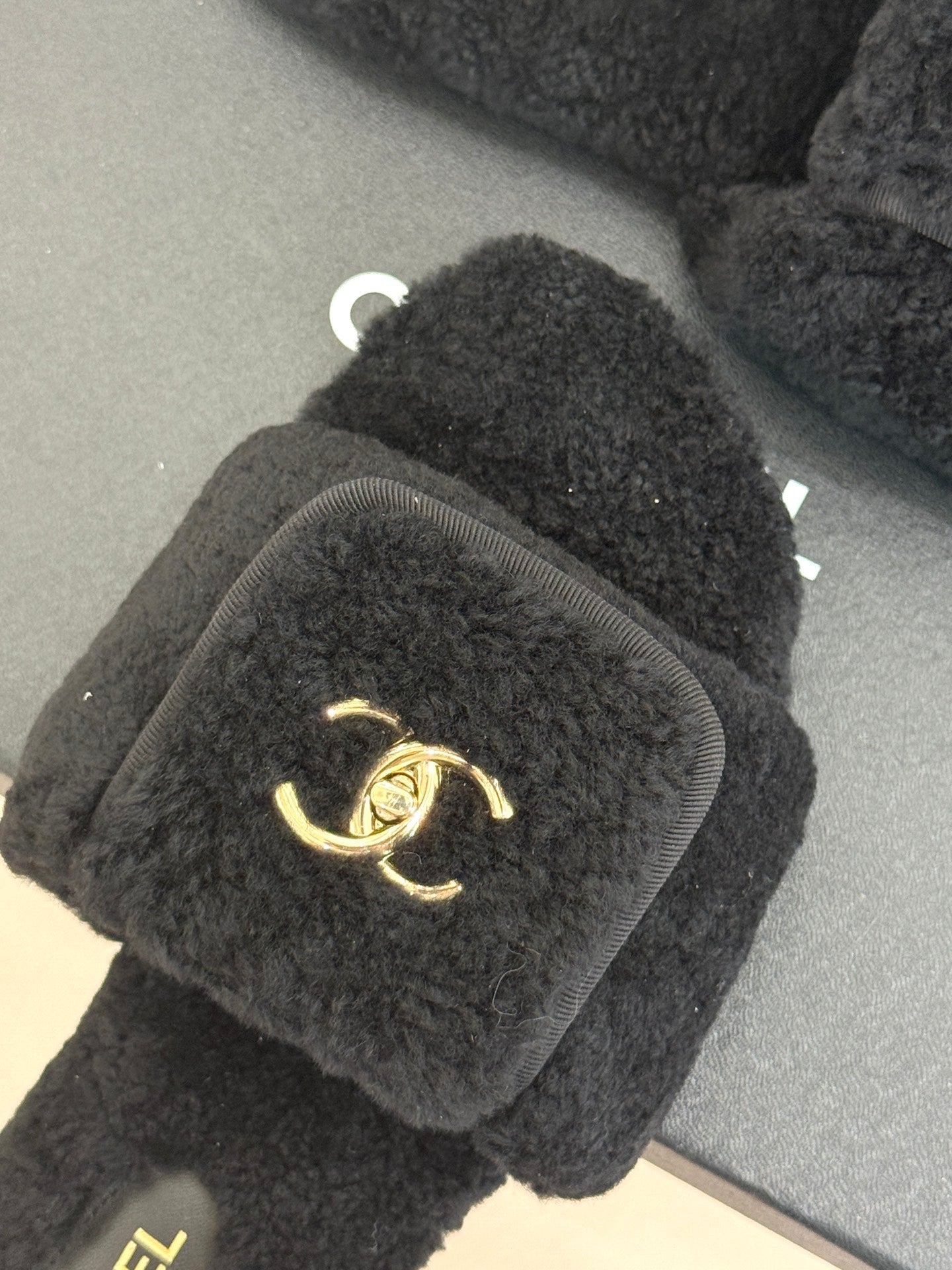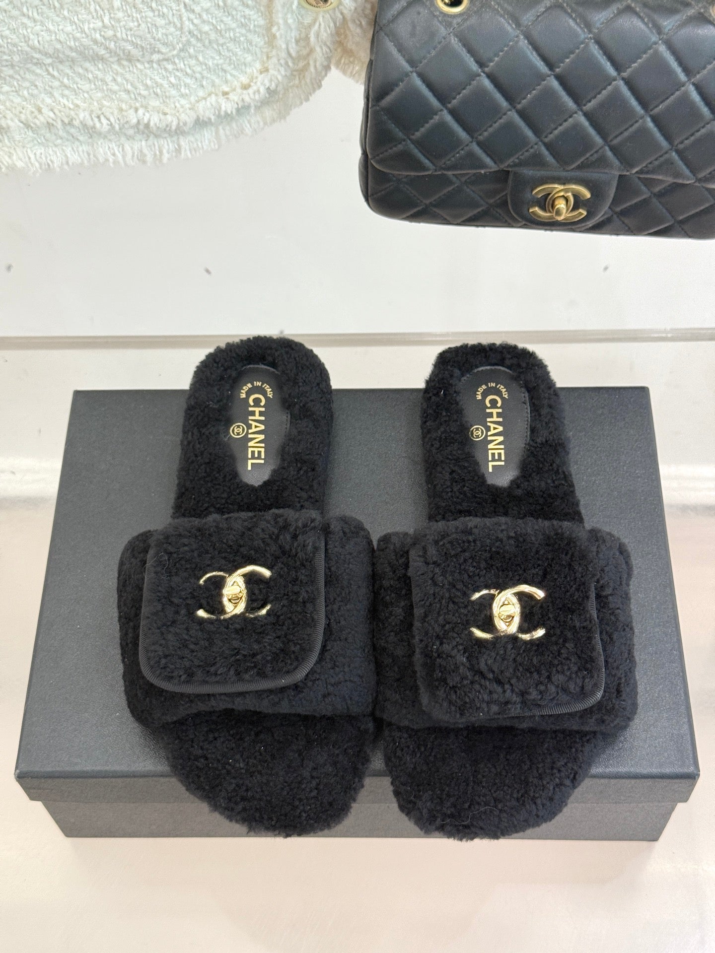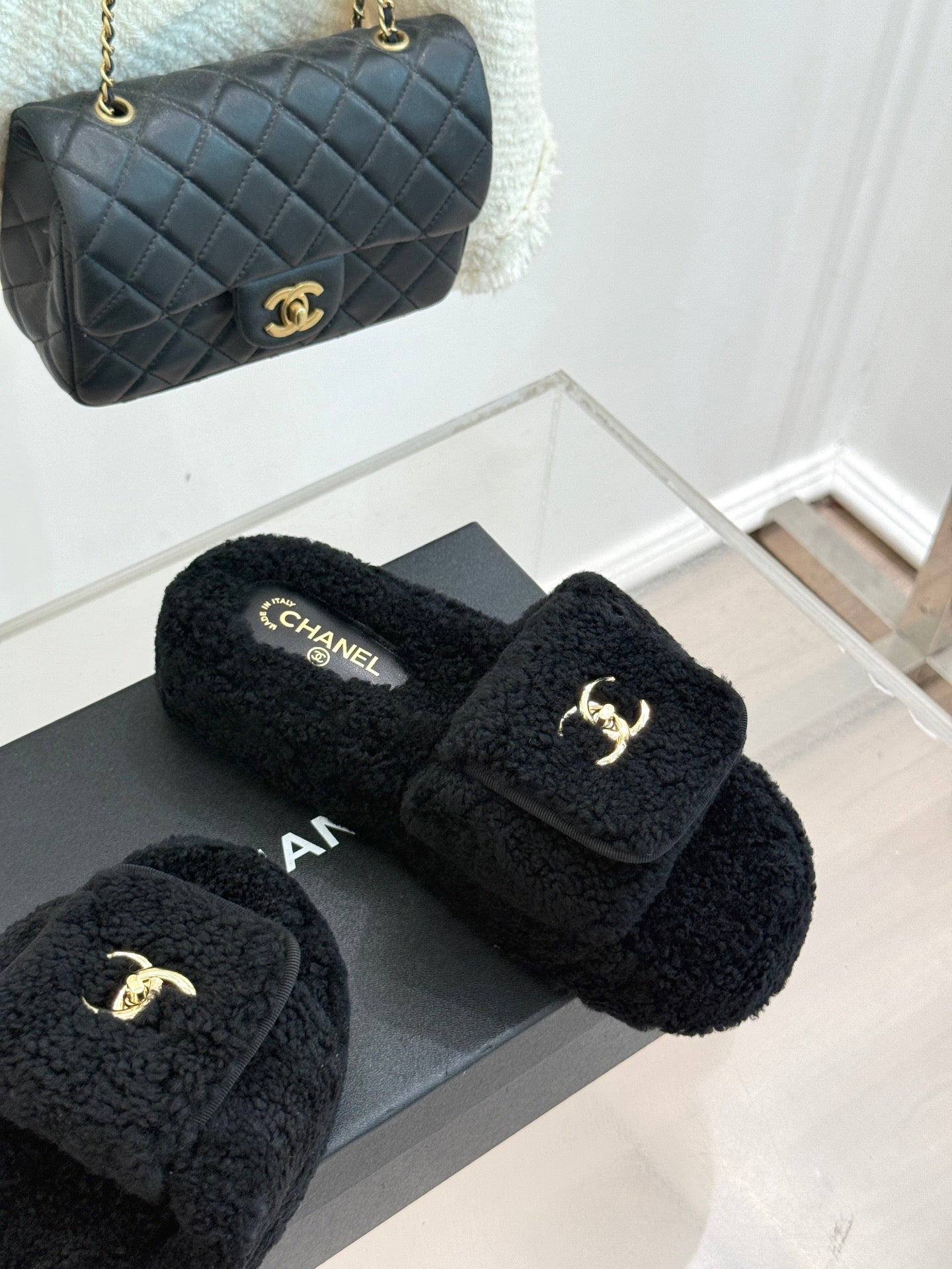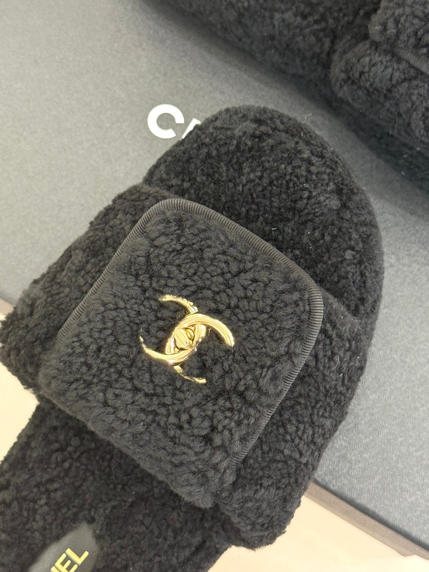 Chanel 25 Slipper black Smooth Lambwool 465602