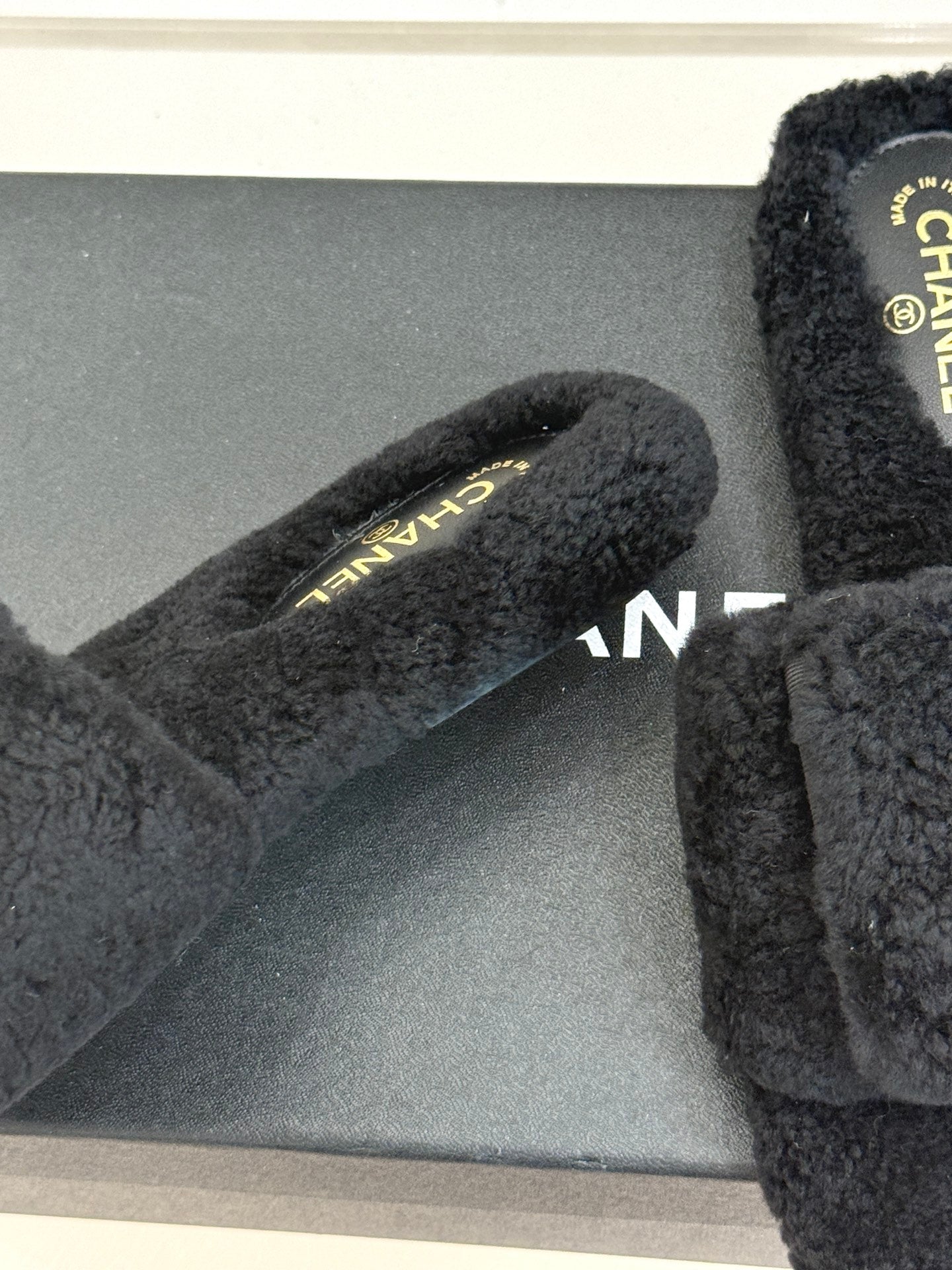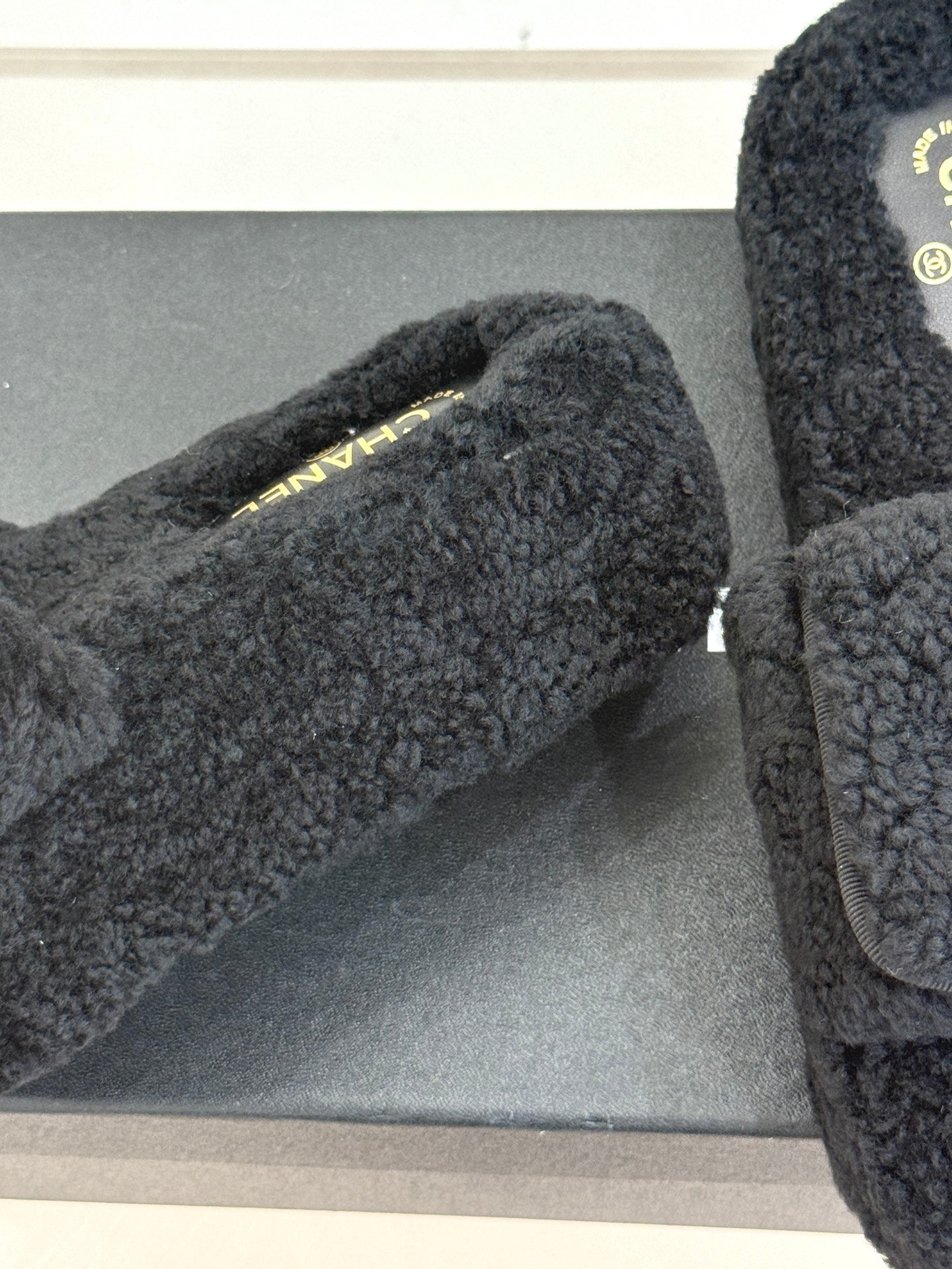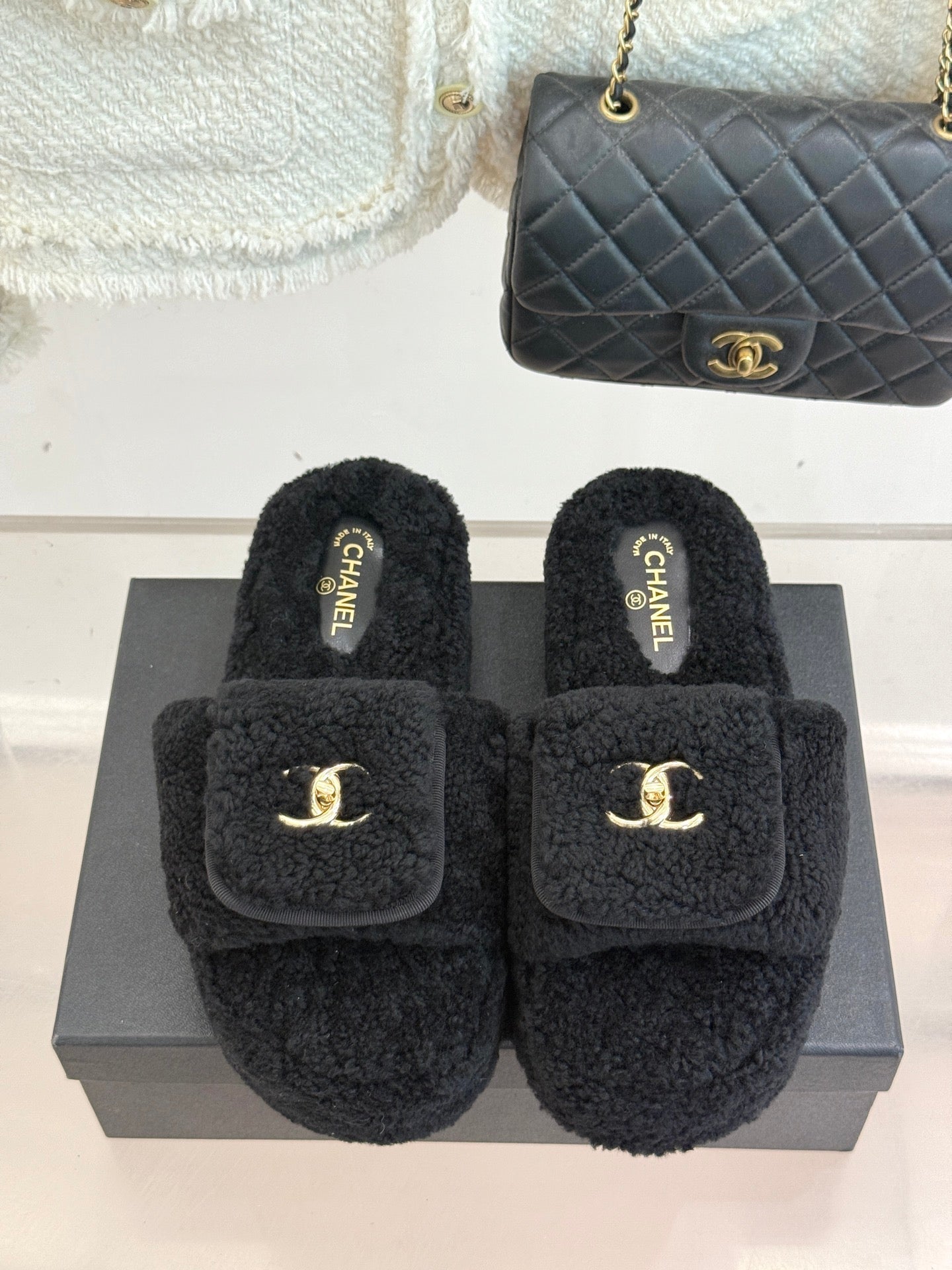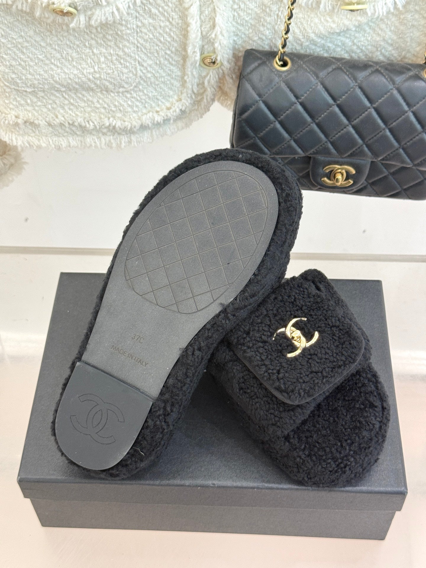 Chanel 25 Slipper black Smooth Lambwool 465602
