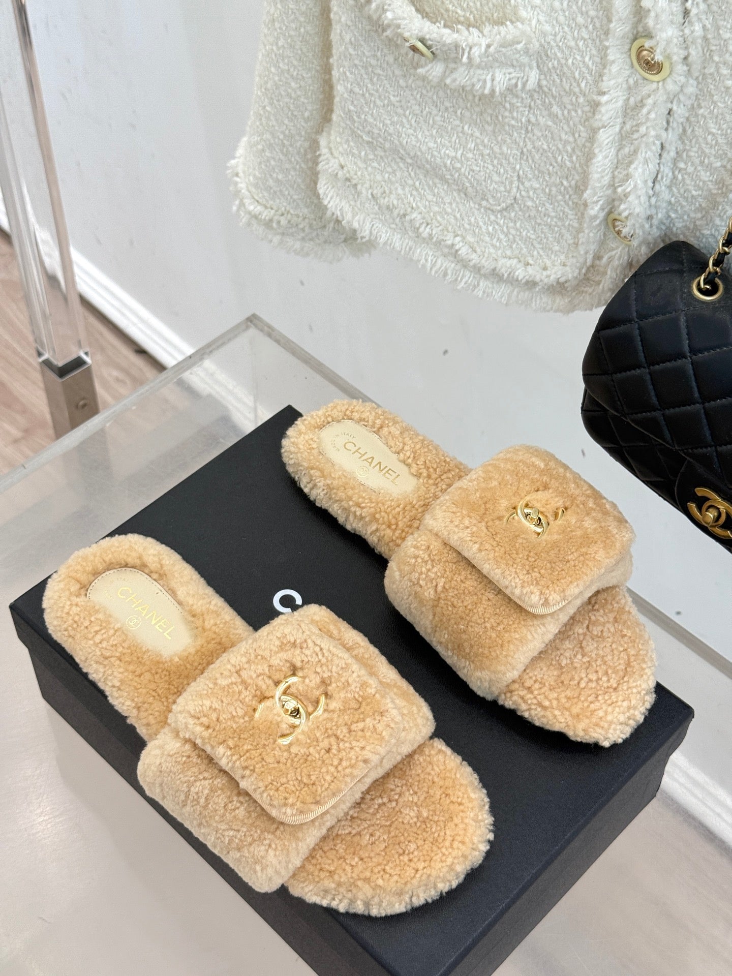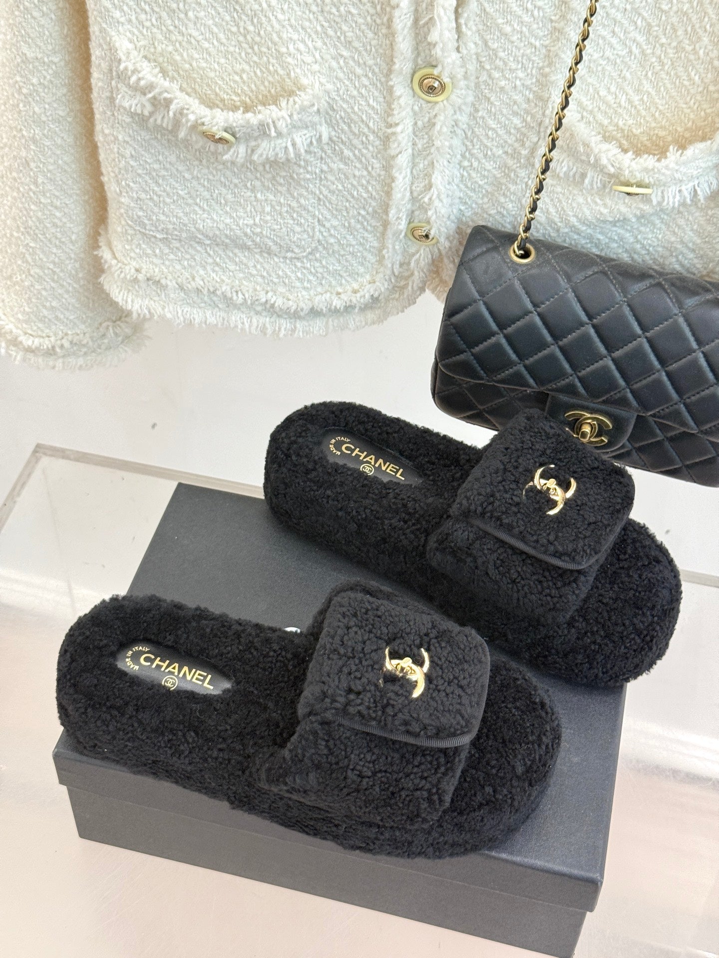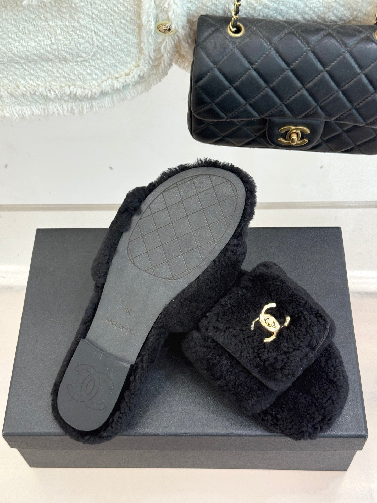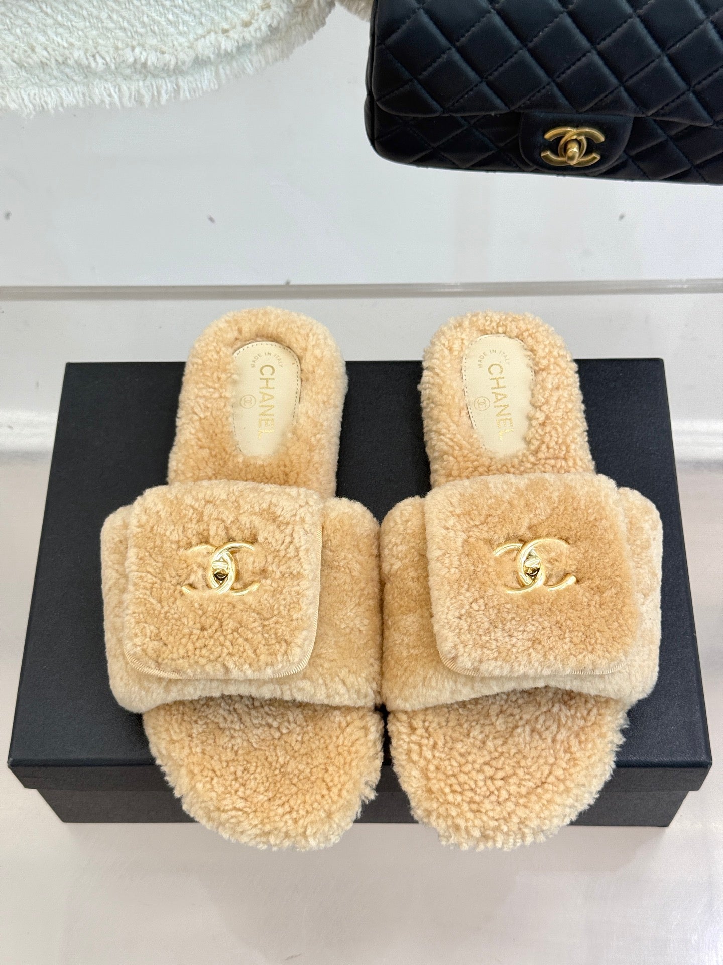 Chanel 25 Slipper black Smooth Lambwool 465602
