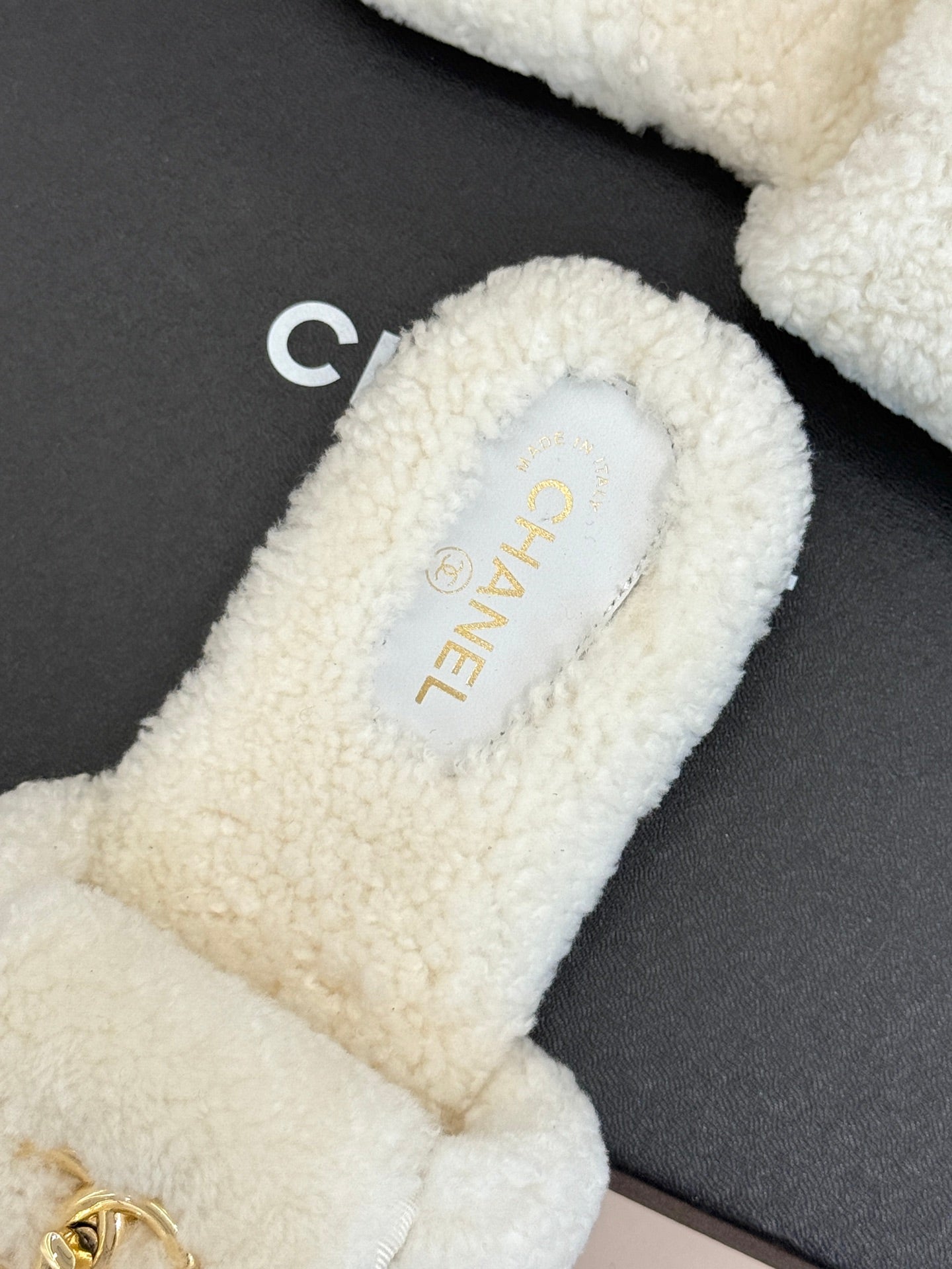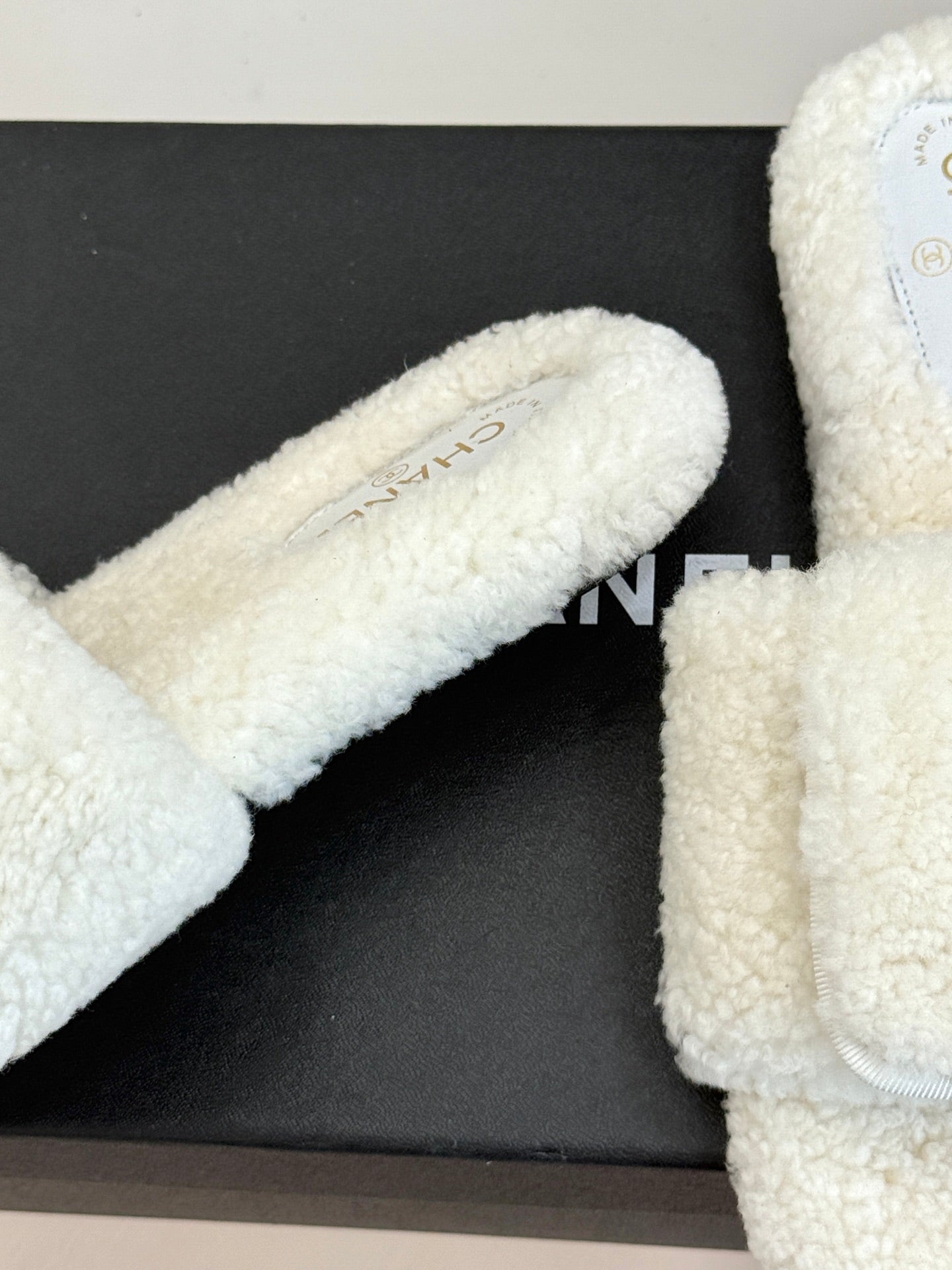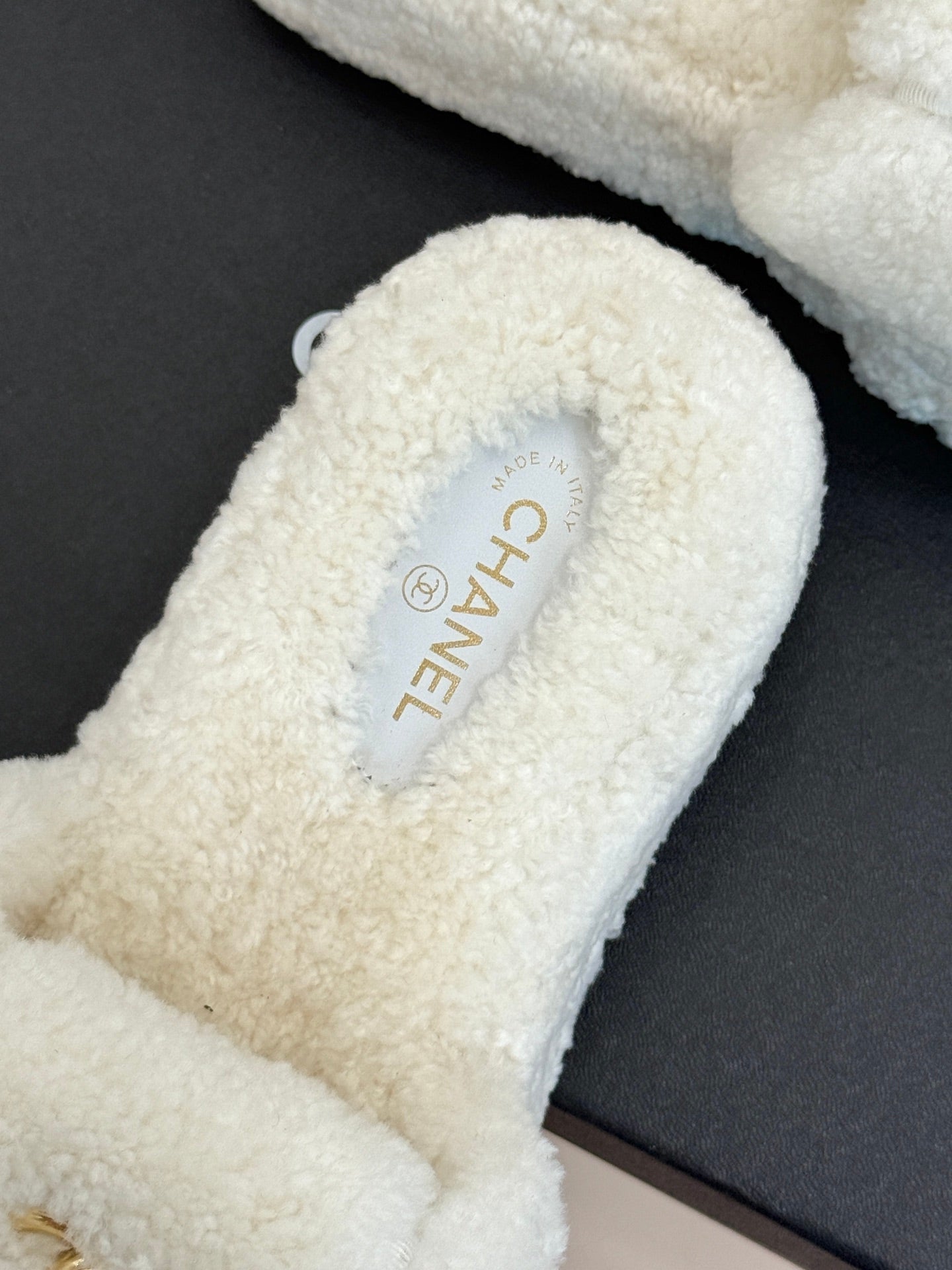 Chanel 25 Slipper White Smooth Lambwool 465603