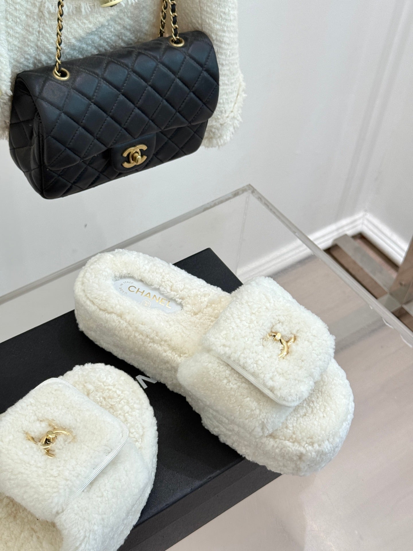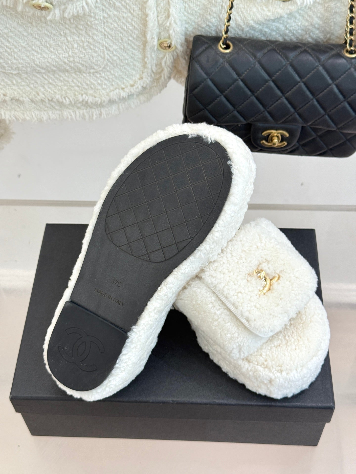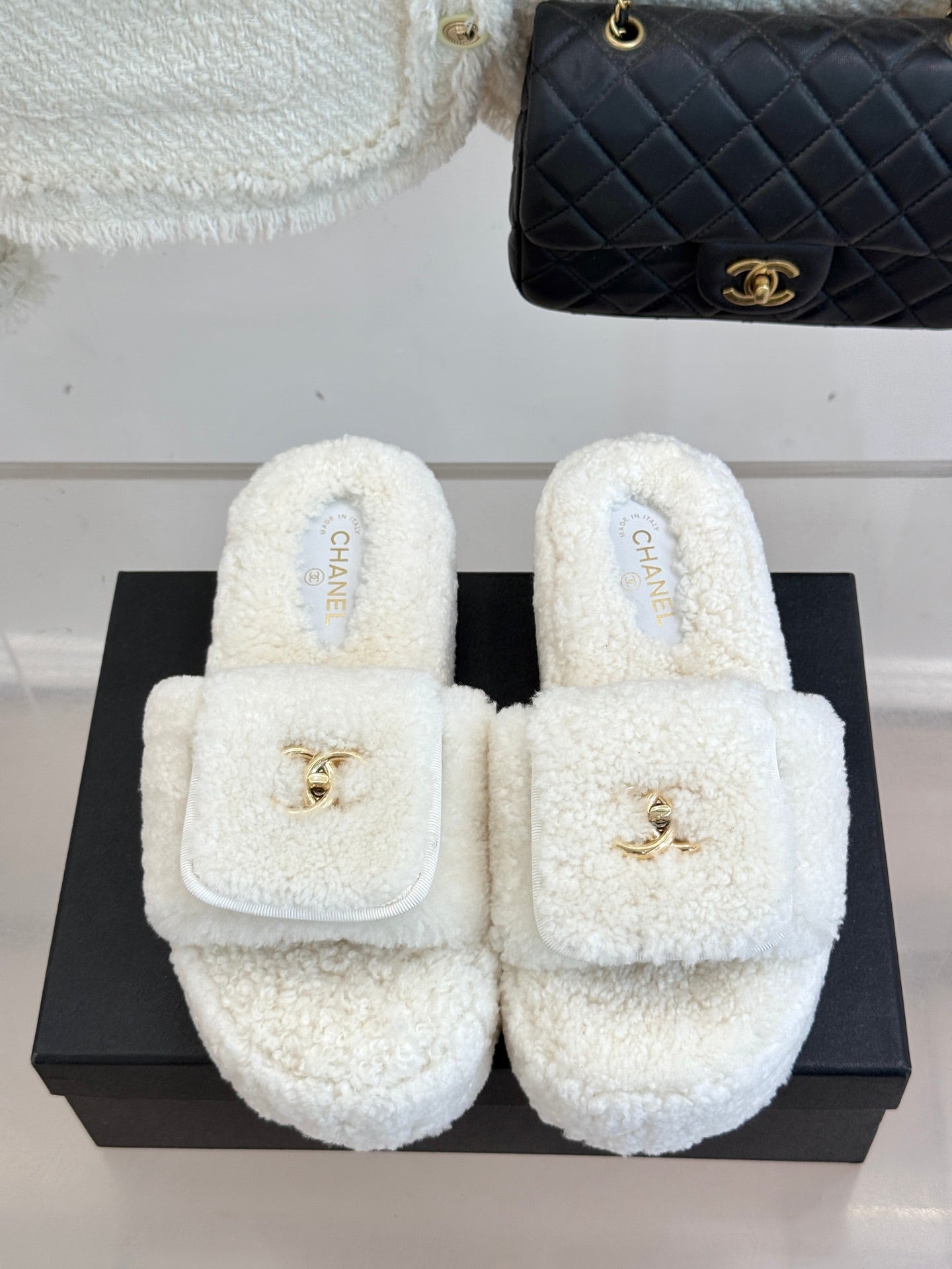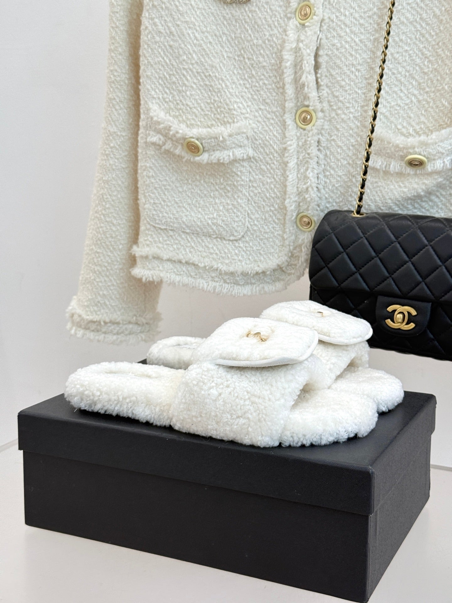 Chanel 25 Slipper White Smooth Lambwool 465603