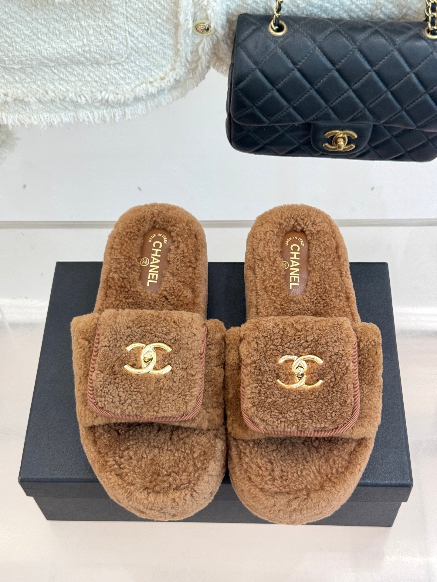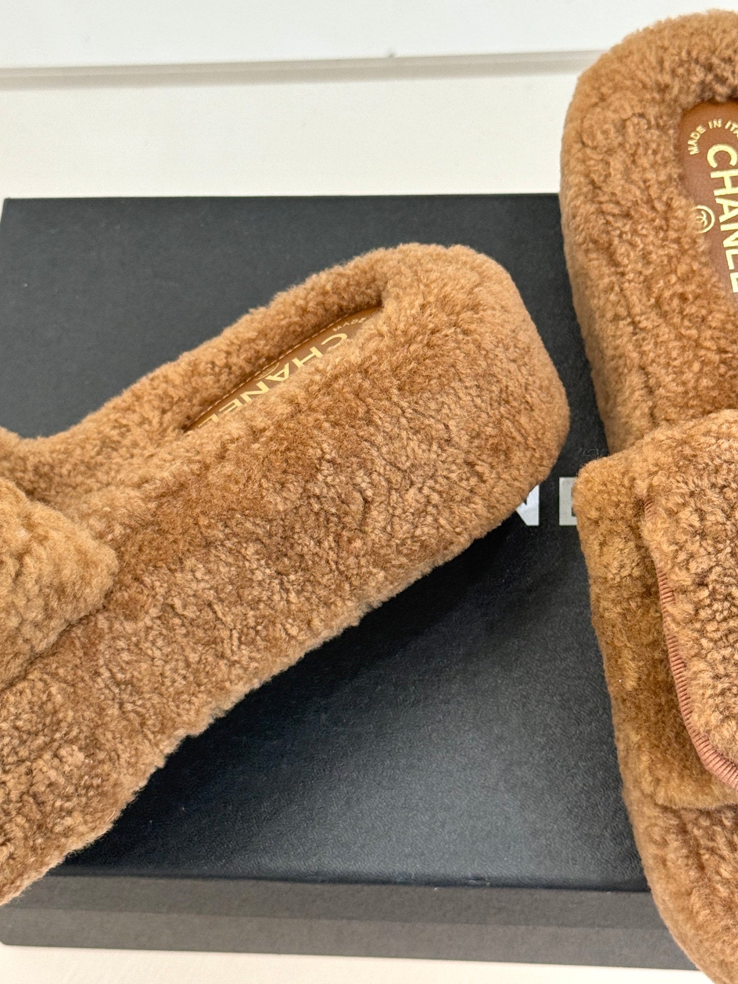 Chanel 25 Slipper Brown Smooth Lambwool 465600