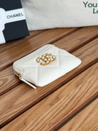cc 19 zipped coin purse 11cm white lambskin gold hardware