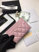 CC BOY CARD HOLDER 11.2 BABY PINK CALFSKIN GOLD ICON